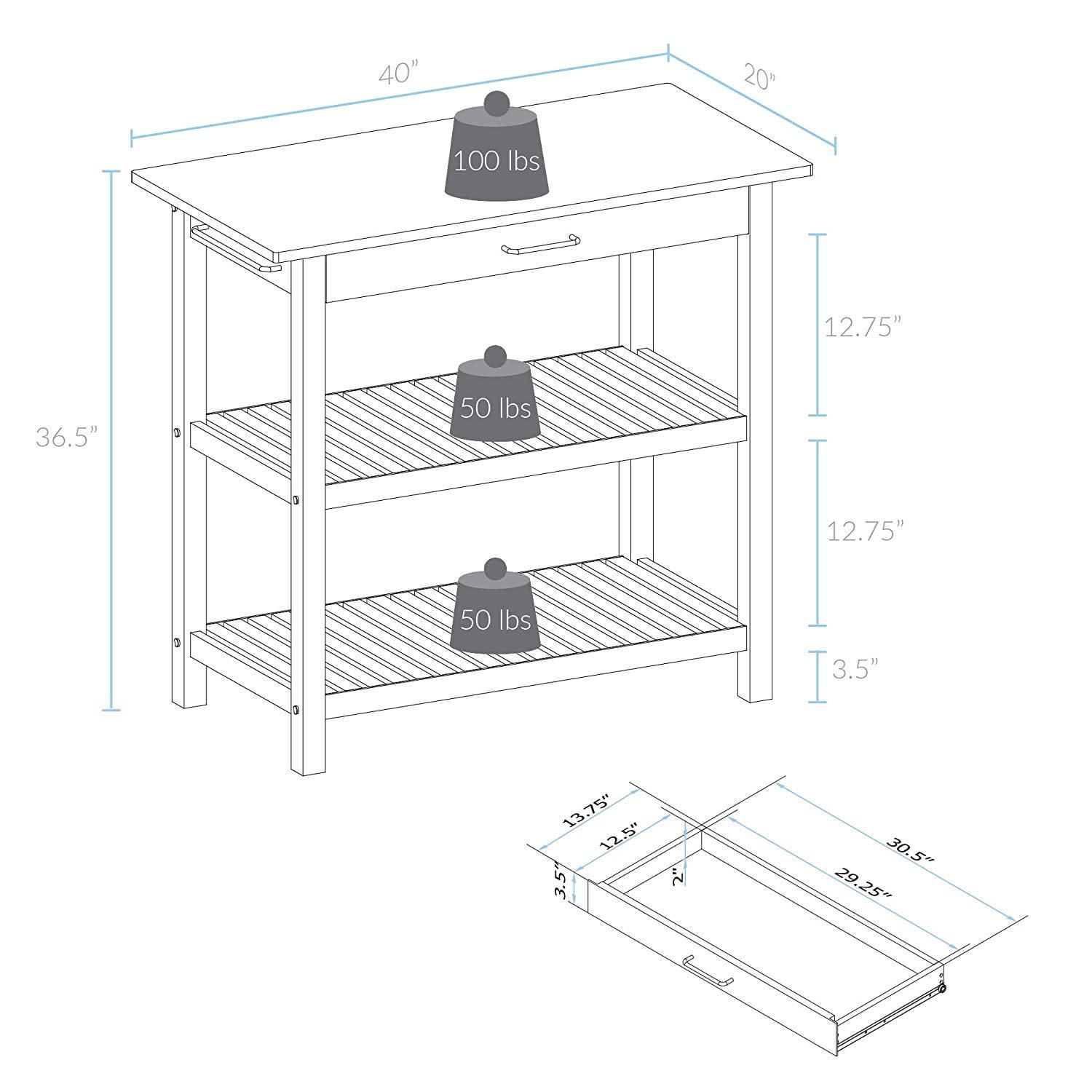 This Casual Home Kitchen Island cart is the perfect addition to any kitchen that could use some extra counter space. Its details are manifested in the beautiful finish of the solid wood. 2 shelves and a drawer provide multiple ways to keep your kitchen organized and all of your cooking essentials close at hand. You’ll appreciate the convenient drawer that pulls with a stainless steel handle to provide an enclosed space to keep your kitchen essentials. And, it’s lightweight and easy to assemble, keeping the stress levels at 0.