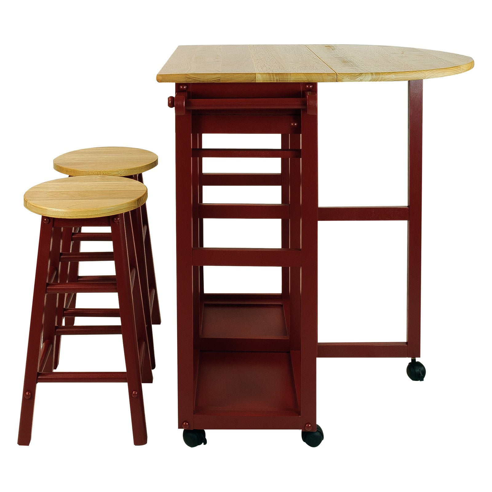 Breakfast Cart with Drop-Leaf Table, White: Set includes table and 2 stools Integrated stool nesting storage design 2 towel racks serve as a convenient place to hang your towels Lockable wheels provide mobility and stability Solid wood construction for increased durability and longevity Light and easy assembly Kitchen breakfast cart includes 2 drawers Available colors: white, natural, red