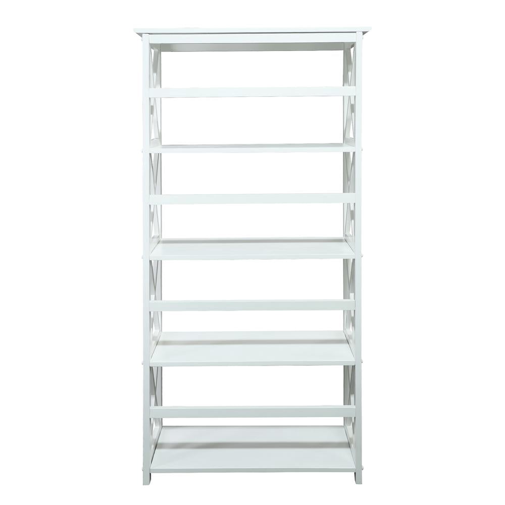 Montego 5-Shelf Bookcase-White Storage with ease, this Montego X-Design Style Bookcase is constructed with solid wood for lasting use. 5 shelves provide ample storage space. Thorough finish gives this bookcase a strong, contemporary appearance. Perfect for home storage and decor.