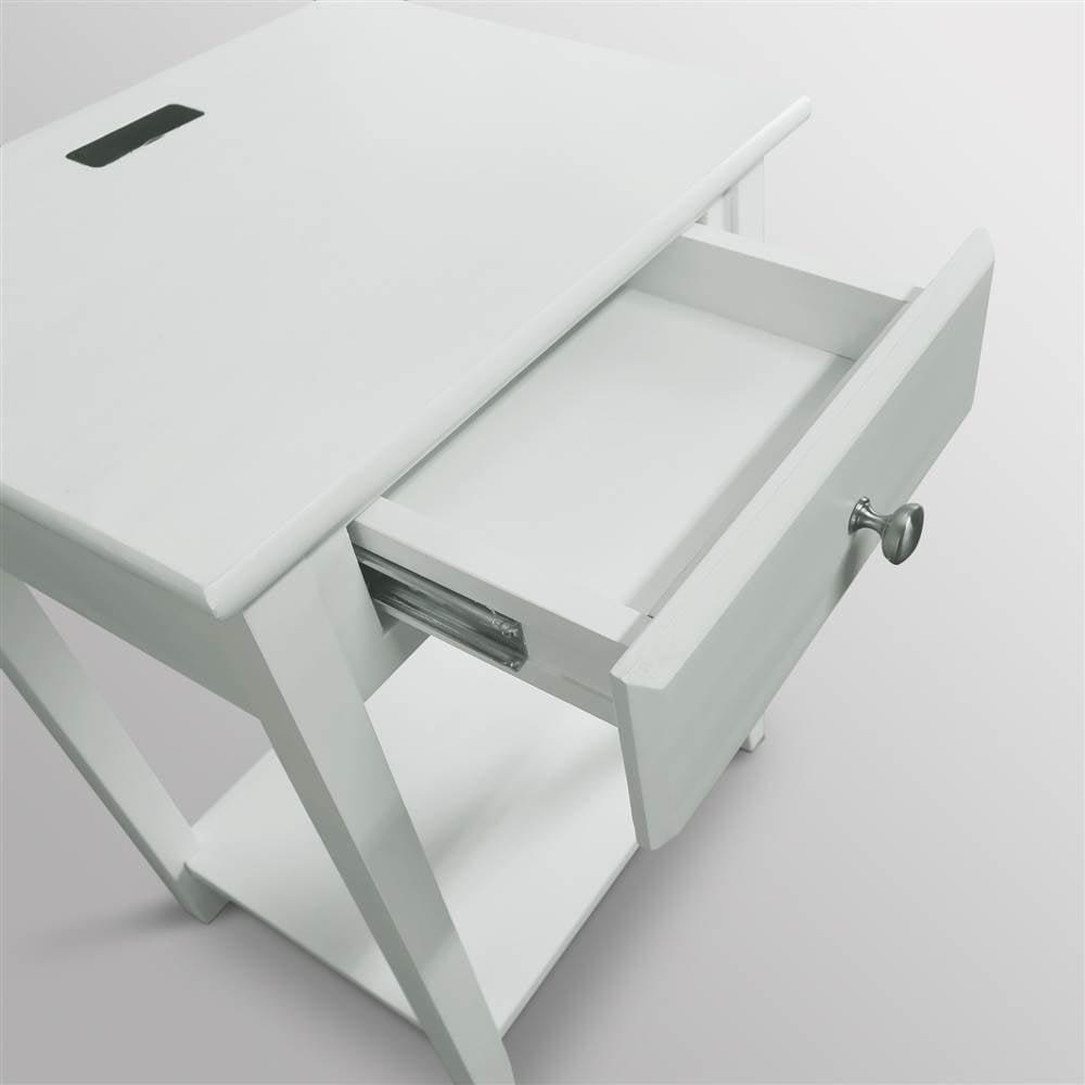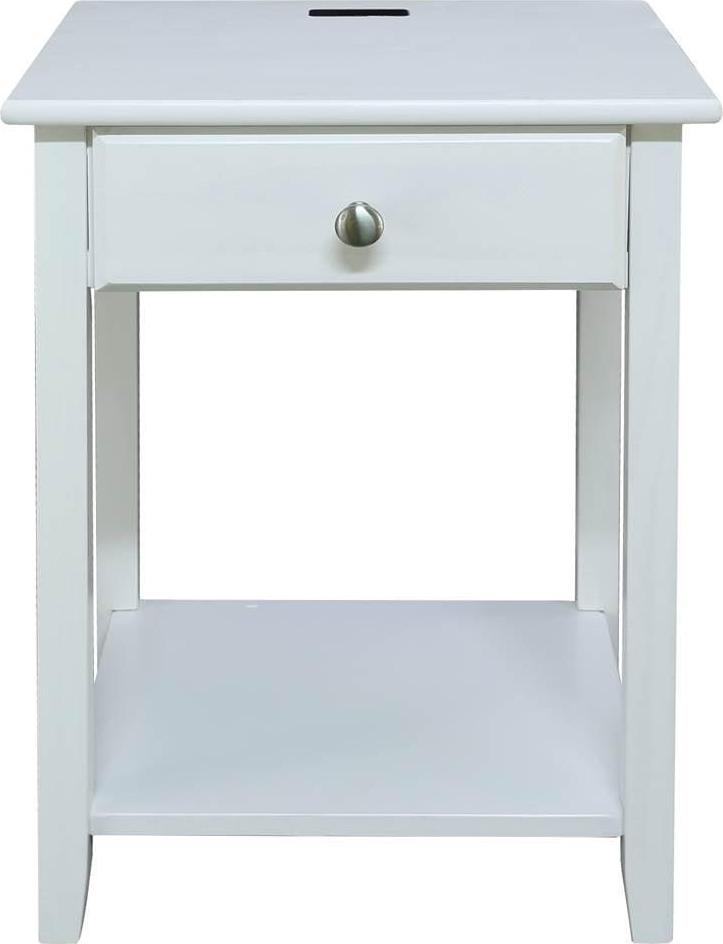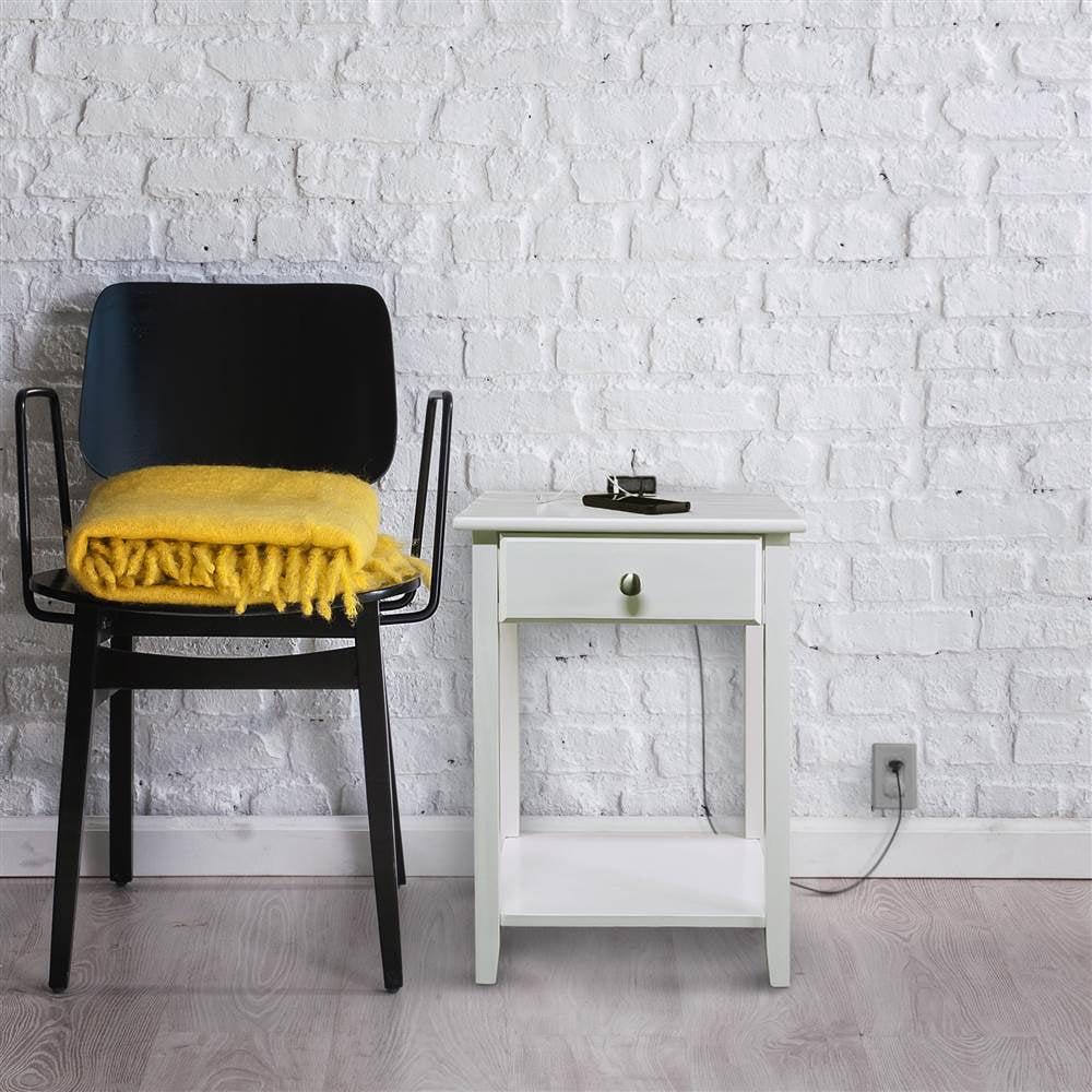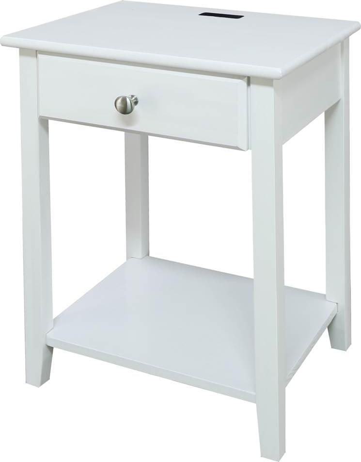 - Sleek white finish brings style to a practical, tech-friendly nightstand