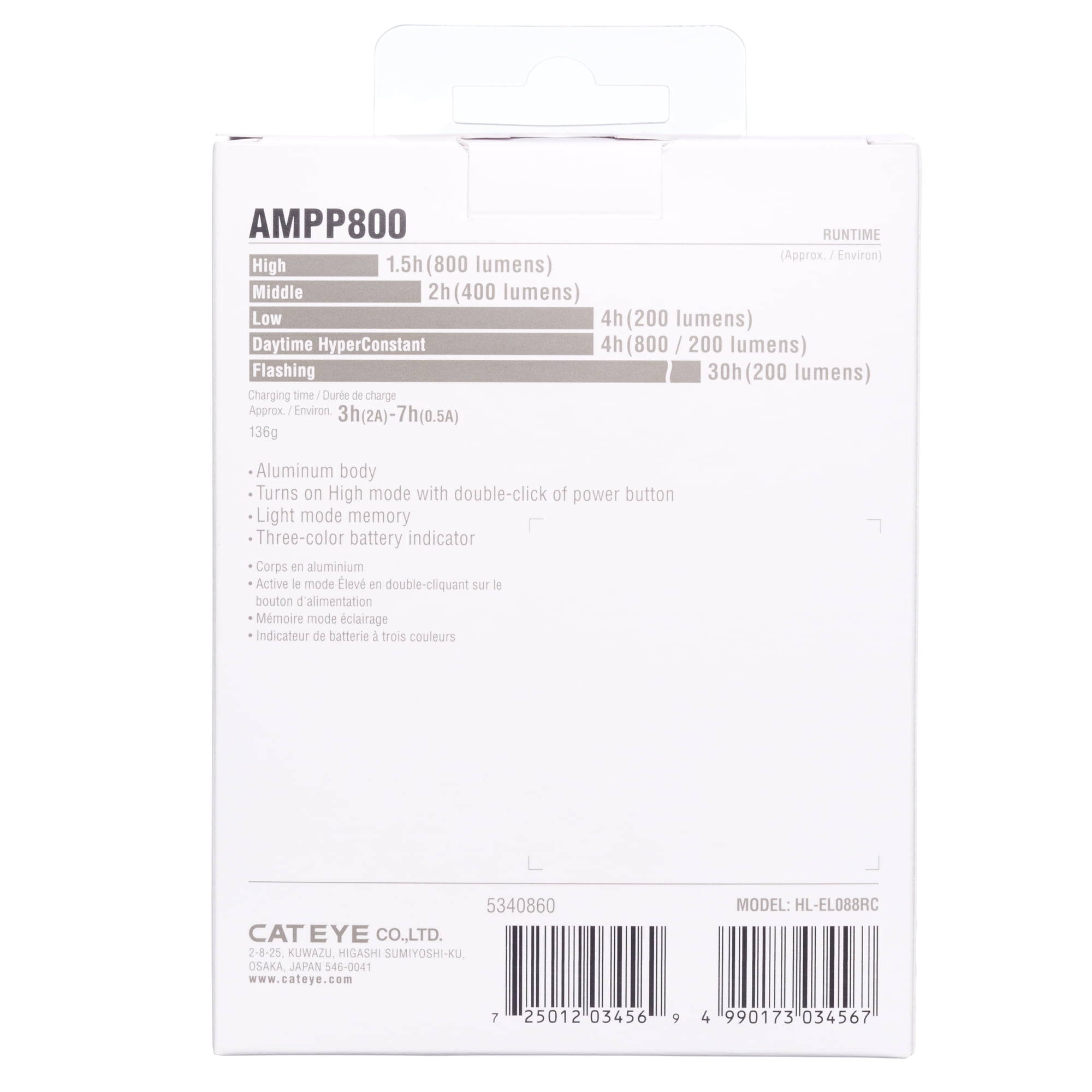 CAT EYE – AMPP800 Rechargeable Bike Headlight, High Power LED, 800 Lumens, with Micro USB Cable