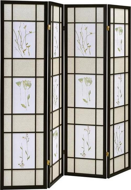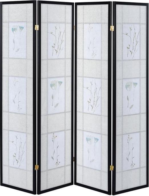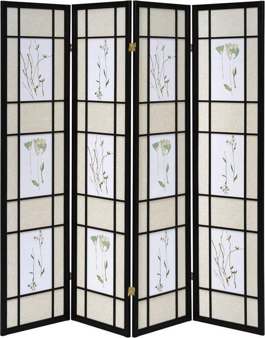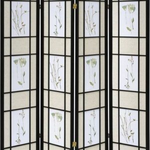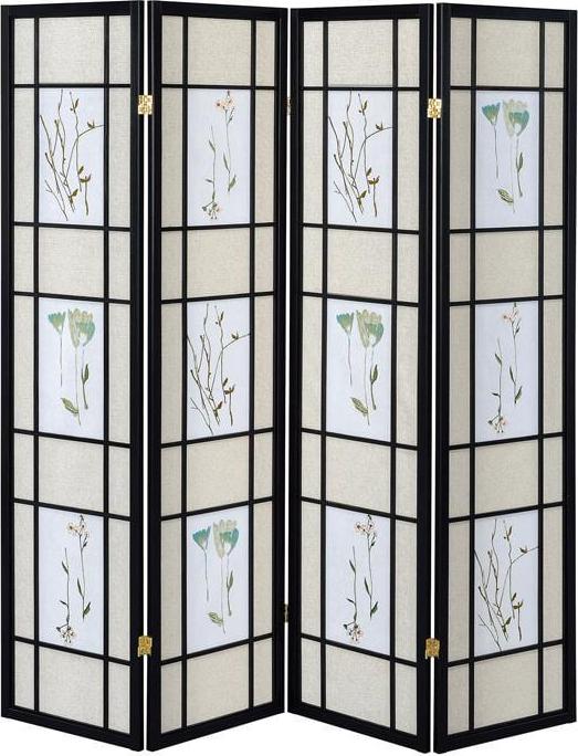 - Four panel screen with printed floral detail