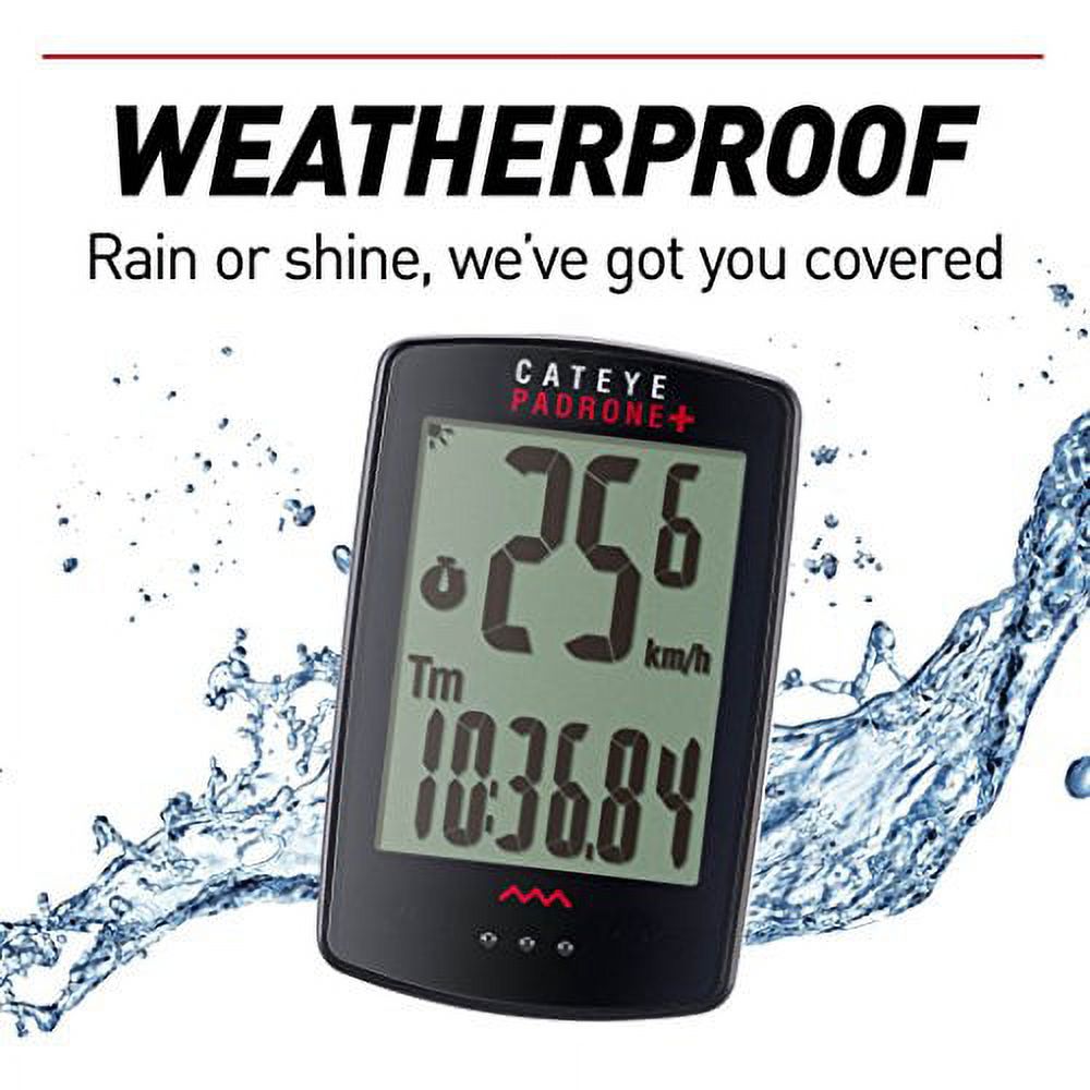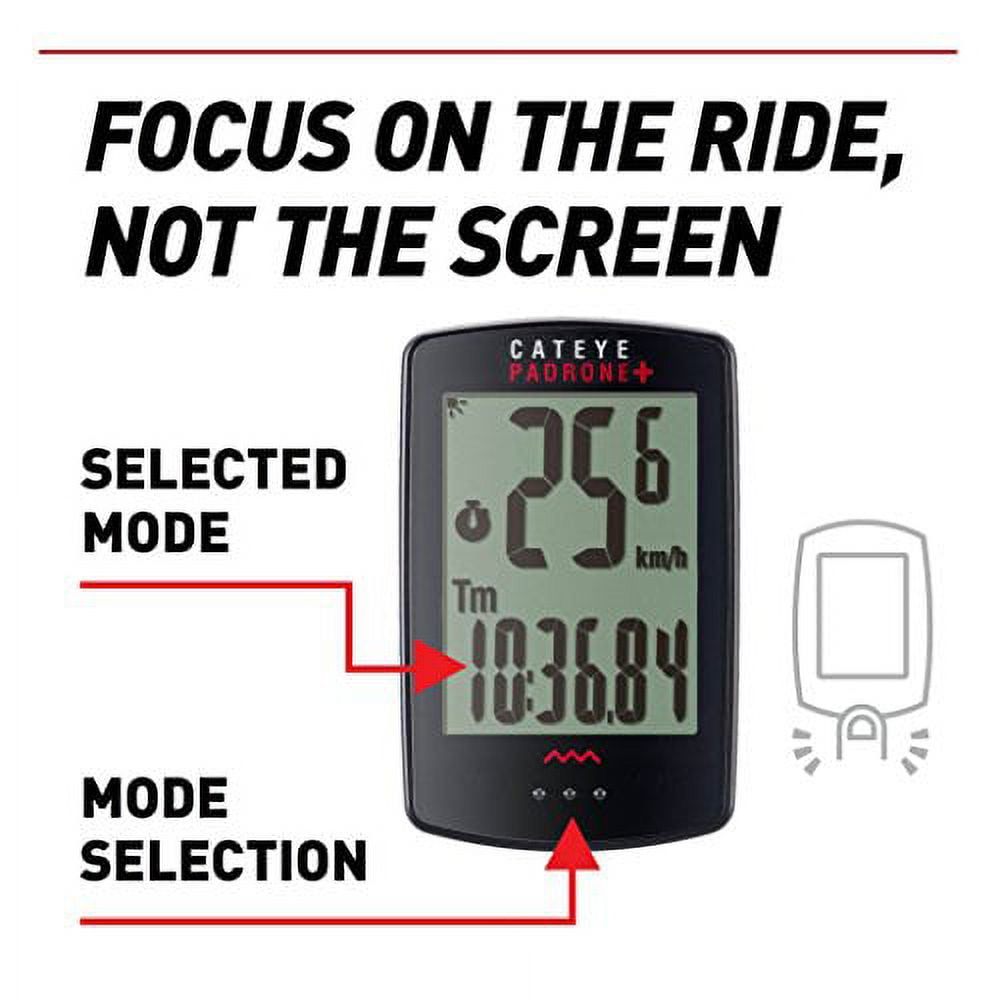 The Padrone Digital Wireless bike computer makes cycling data simple and accessible with its large, 3-row screen, displaying up to four data displays, auto sensor and tire recognition, ClickTec™ button interface, and programmable display. The optional wireless cadence and heart rate sensors let you upgrade to triple wireless and capture all your ride data. The FlexTight™ universal bracket makes for easy installation to multiple bikes and its compatible with the CatEye Cycling™ smartphone app for setup, data uploading, and ride data summary import.