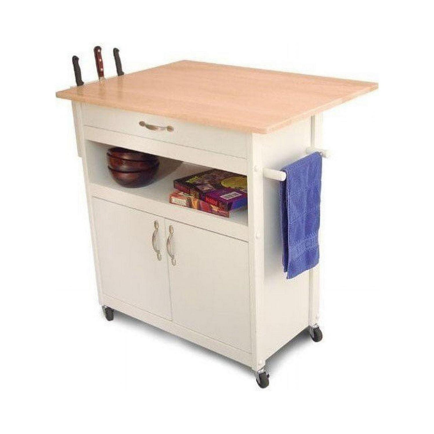 Catskill Craftsmen Butcher Block Kitchen Cart with Drop Leaf in White