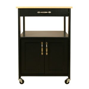 Handsome and sturdy, this Catskill Craftsmen Kitchen Trolley is the perfect solution to the endless quest for more counter space. It features a wide drawer that helps you to store spices or plates safely. The locking casters make for both mobile and stationery use. When not in use, this elegant cart has ample space for kitchenware storage. This natural wood kitchen table is constructed using warp-proof materials that resists scratches and gives a radiant look. It comes with a black finish and a natural wooden top that makes this rolling kitchen cart all the more attractive. It just requires few minutes of wiping to make it look shiny and neat.