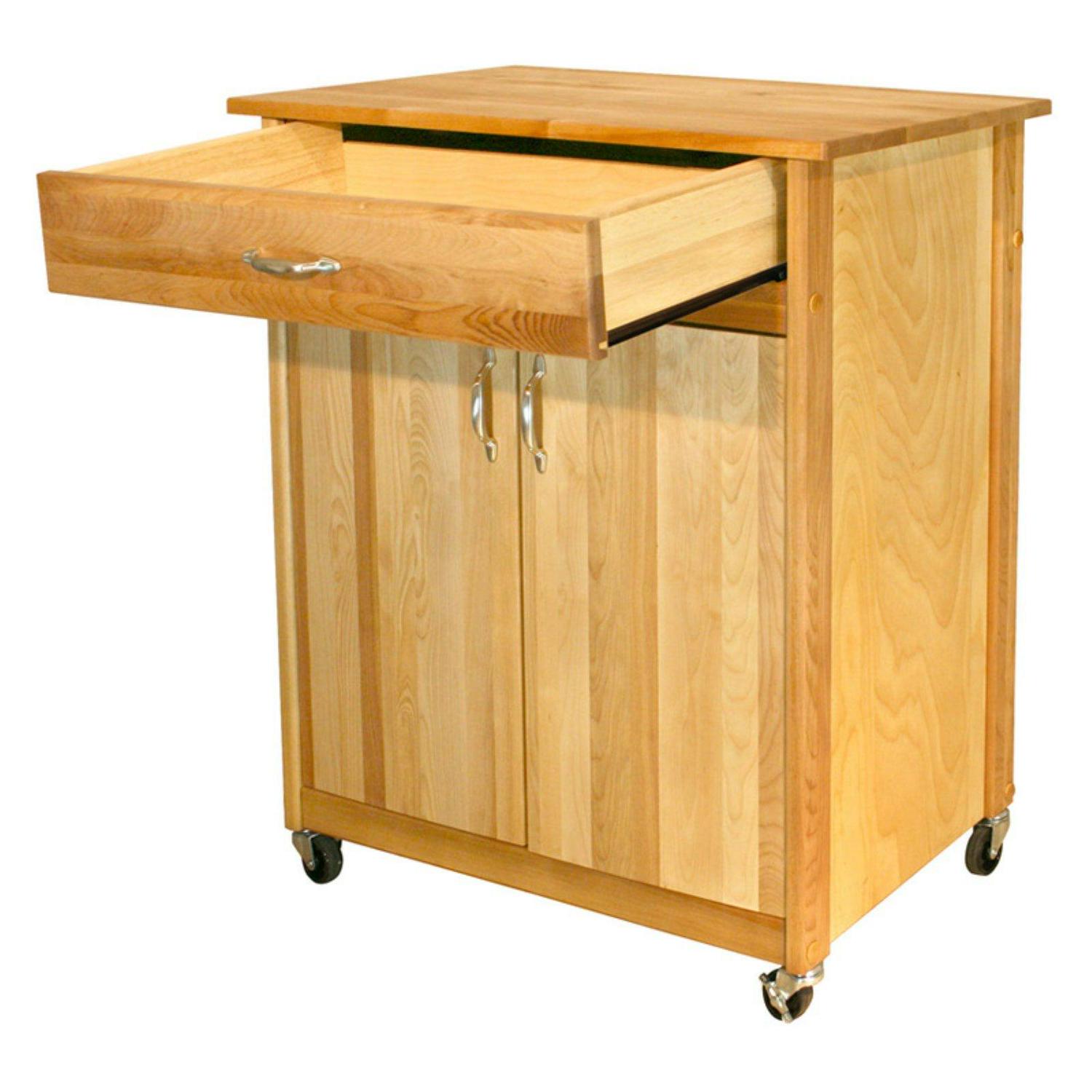 Give your kitchen extra work space and storage with the natural beauty of the Catskill Mid-Size Two Door Cart. This beautiful cart is made of a Northeastern hardwood and features an oil-rubbed finish and a classic butcher block top. Lower doors open to reveal spacious storage and an adjustable shelf for serving dishes or appliances. A top drawer keeps other kitchen essentials like knives or cookware close at hand. Smooth-rolling casters let you maneuver this cart wherever it’s needed, while two locking casters keep it in place. Proudly made in the USA with sustainably harvested domestic hardwood.