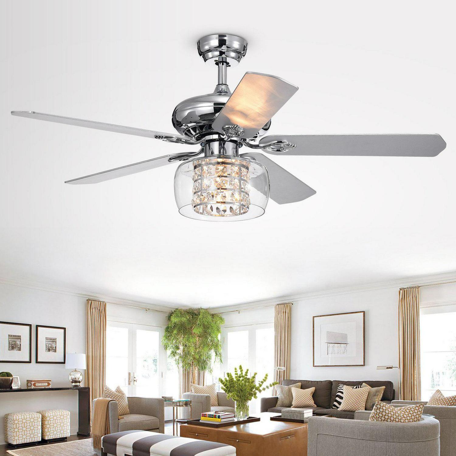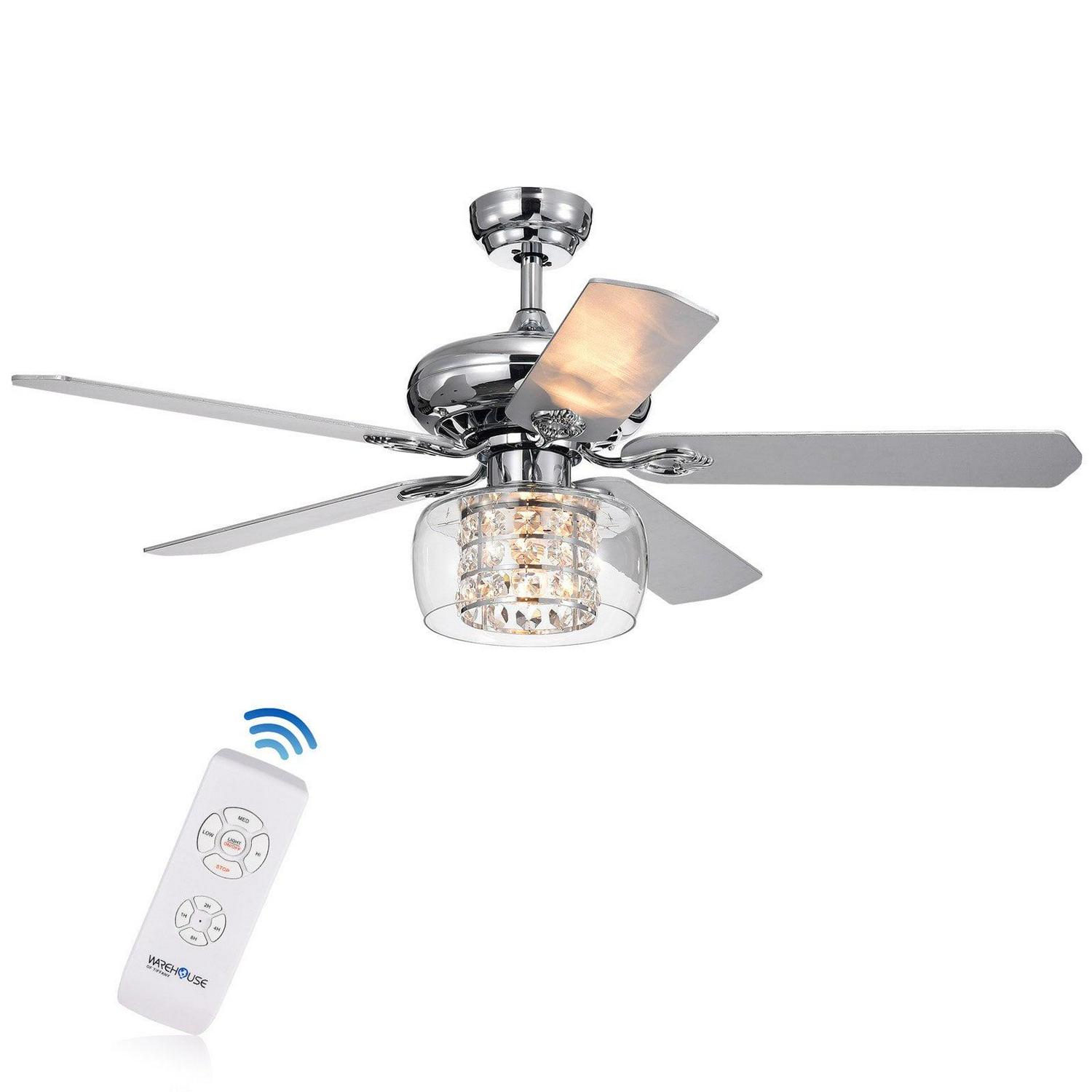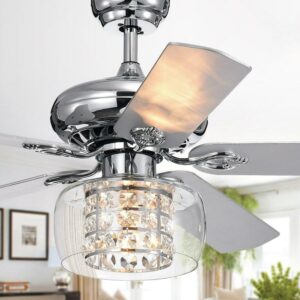 Cayten 5-Blade 52-Inch Chrome Lighted Ceiling Fans with Crystal Shade (Remote Controlled)