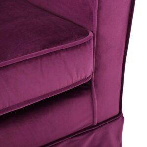 Comfort and elegance meet in the design of the Cecilia Velvet Swivel Accent Chair With Loose Cover. Plush velvet fabric covers the curvy back, continuous arms, and welted seat cushion of this glamorous chair. For added sophistication, the heavy-duty swiveling iron frame is concealed by a pleated skirt.