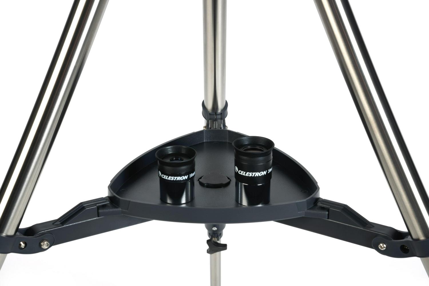 In addition to the smartphone adapter, your AstroMaster LT 70AZ comes with two eyepieces (20mm and 10mm), an erect image diagonal, and a permanently mounted StarPointer red dot finderscope. The two eyepieces offer different magnifications to view your intended object. The erect image diagonal allows for a more comfortable viewing angle and right-side-up images. The finderscope will help you quickly center an object in your eyepiece for easier observing.