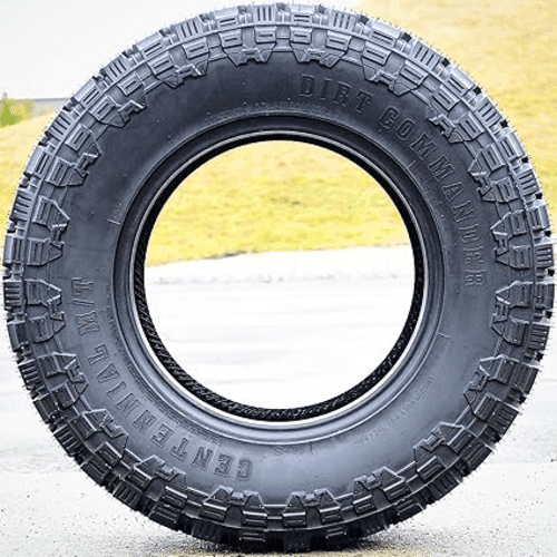 The Centennial Dirt Commander MT tire is an off-road mud tire that provides the ultimate levels of mud traction, and grip on rock and mixed terrain. It has an aggressive tread pattern and raised upper shoulder sidewall lugs that Jeep and truck enthusiasts love. While the tire is designed primarily for off-road traction, it is remarkably quiet on the highway, so a great option for mall-crawlers or any daily driver in the city. For off-road traction, the voids between the massive center blocks, as well as the wide open shoulder grooves help evacuate mud and debris from between the treads. The upper shoulder lugs not only look cool, they work to add extra biting edges in deep loose mud, sand and snow, as well as providing extra protection from sidewall impacts.