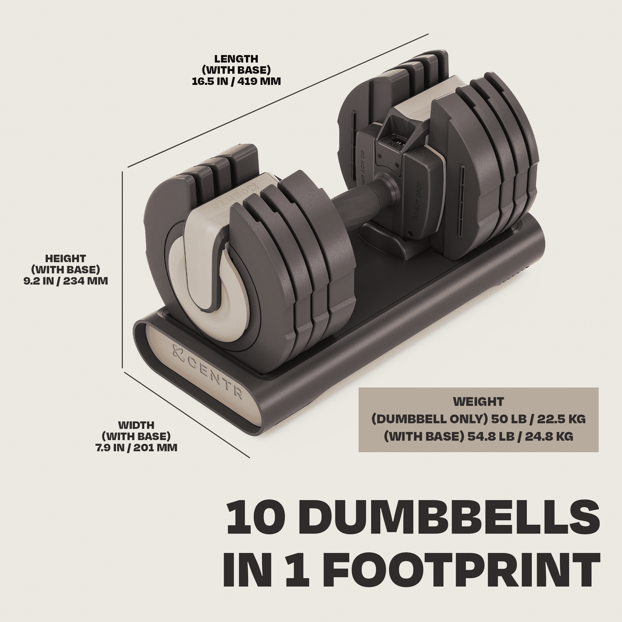 Centr Smart Stack 50 Adjustable Dumbbell, 5-50 lbs