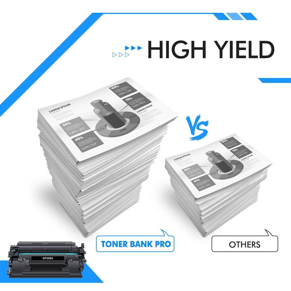 Toner Bank is a reseller of printer consumable products with its warehouses in East and West Coast since 2015. We carry wide range of compatible toner cartridges & printer ink for most major printer brands.Our products are certified with ISO 9001 and ISO 14001. 58A 58X Ink Cartridge offers daily reduced price and clearance price for customers to find the most cost-effective options. Please pay attention to sales discounts and savings your money. Toner Bank 58A Toner Cartridge 58X CF258X with chip Compatible 58X Laserjet Toner Cartridge for HP laserjet pro m404dn 58X CF258X 58A CF258A Savings your Money and hp m404n m404dn toner provide Better Print Output WITH CHIP: These hp m428fdn toner are already installed with original chips, No need to transfer original 58A or 58X toner chip to them HIGH PAGE YIELD: Up to 10,000 pages for 58X CF258X black toner (Letter/A4, at 5% coverage) PACKAGE INCLUDED: 3 Pack 58X CF258X 58A CF258A Toner Cartridge Replacement for HP 58X Toner Cartridge Black INK COLOR: 3 pack Black 58a cf258a toner (with chip) of hp58a & hp58x PRINTER COMPATIBLITY: 58X CF258X Toner compatible for hp laserjet pro mfp m428fdw with Pro MFP M428 , M428dw , M428fdw , M428fdn , hp laserjet pro m404dn Pro M404 , M404n , M404dn , M404dw , hp m404n Enterprise M430f , M406dn Printer Products you may also like Image Product Name 1-Pack 58A Toner Cartridge (With Chip) 2-Pack 58A Toner Cartridge (With Chip) 2-Pack 58X Toner Cartridge (With Chip) Price Now $48.99 Now $78.99 Now $83.99