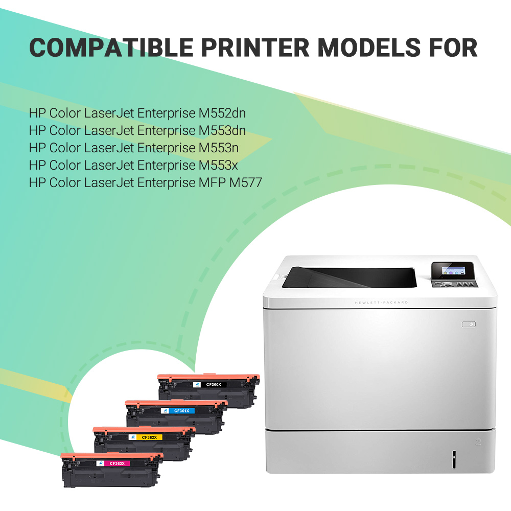 CF360X 508X Toner Cartridge 4-Pack Compatible for HP CF360X CF360A 508X 552dn M553dn M553n M553x MFP M577 (Black,Cyan,Magenta,Yellow)