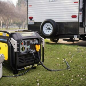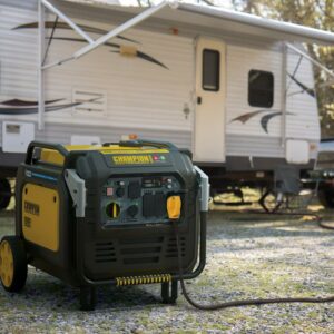 The Champion Power Equipment 201175 8500-Watt Inverter Generator with CO Shield is ultra-quiet and ideal for camping, tailgating, powering items around the RV or providing backup for your essentials. Champion s EZ Start Dial makes getting started quick and easy. Featuring Cold Start Technology, Extended Run Time, Electric Start, and an easy to read fuel gauge. With a 1.2-quart oil capacity (included 10W-30) and a low oil shut-off sensor, this inverter operates at an ultra-quiet 61 dBA from 23 feet, which is about as loud as normal speech. The no tool access panel and oil drain tube allow for easy maintenance. Operate your Dual Fuel inverter right out of the box on gasoline or propane, and easily switch fuels with the EZ Start dial. When the 5.33-gallon tank of gasoline is full, the 420cc Champion engine produces 8500 starting watts and 7000 running watts and will run for up to 14 hours at 25% load. When using a 20-pound propane tank, it produces 8500 starting watts and 6300 running watts and will run for up to 12 hours at 25% load. Our Quick Touch Panel offers fast access to all your controls. As the electrical load is reduced, the inverter reduces engine speed, providing quieter operation, extended engine life and higher fuel economy. The covered outlets included are a 120/240V 29.2 A outlet (L14-50R), a 120/240V 30A locking outlet (L14-30R), two 120V 20A GFCI household duplex outlets (5-20R), a 12V automotive-style outlet. Buy this EPA certified inverter generator with confidence Champion Support and our nationwide network of service centers will back up your purchase with a 3-year limited warranty and FREE lifetime technical support. CO Shield technology monitors the accumulation of carbon monoxide (CO), a poisonous gas produced by engine exhaust when the generator is running. If CO Shield detects unsafe elevated levels of CO gas, it automatically shuts off the engine. CO Shield is not a substitute for an indoor carbon monoxide alarm or for safe operation. DO NOT allow engine exhaust fumes to enter a confined area through windows, doors, vents or other openings. Generators must ALWAYS be used outdoors, far away from occupied buildings with engine exhaust pointed away from people and buildings. Meets the requirements of ANSI/PGMA G300-2018.