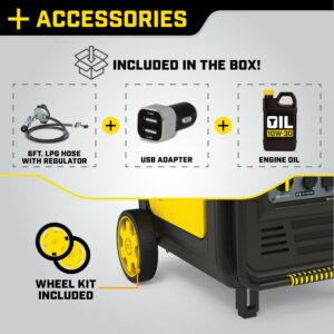 – Operate your 8500-watt dual fuel portable generator right out of the box on either gasoline or propane, plus features CO Shield carbon monoxide auto shutoff system