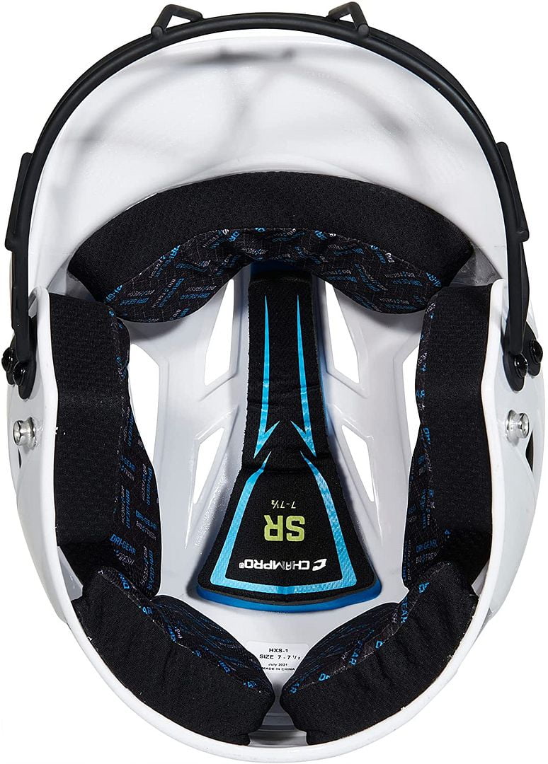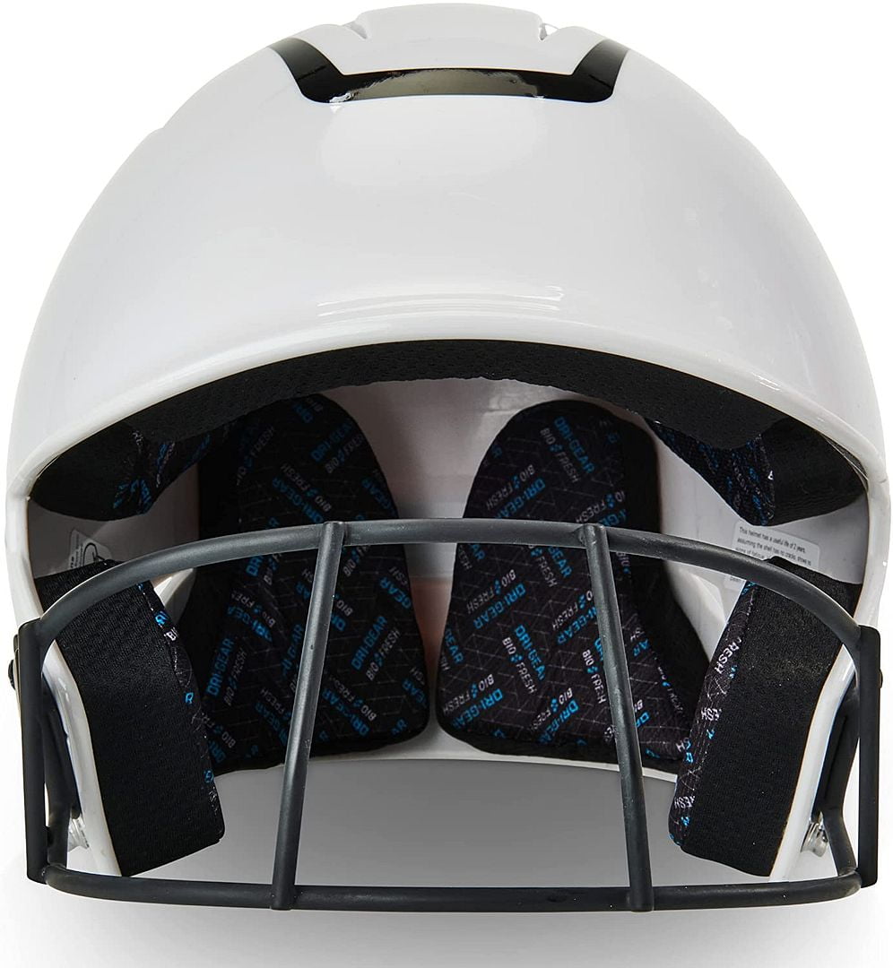 EXCLUSIVE DESIGN: a CHAMPRO exclusive design, the Rise Pro Softball Batting Helmet White/Black maximizes airflow and visibility. Vent holes release heat so hitters can keep a cool head at the plate. DURABLE: This batting helmet’s durable ABS shell withstands high impacts and meets NOCSAE standard for all levels of play. COMFORT: A weight-optimized shell lined with impact foam and jaw pads wrapped in soft-touch moisture-wicking fabric provide excellent protection and comfort. Pads are wrapped in mesh to increase comfort and durability. MOISTURE-WICKING LINER: The contour-molded DRI-GEAR liner wicks away moisture and helps keep batters comfortable and dry on hot days. LASTING FRESHNESS: A Bio-Fresh treatment provides an extra level of freshness preservation.