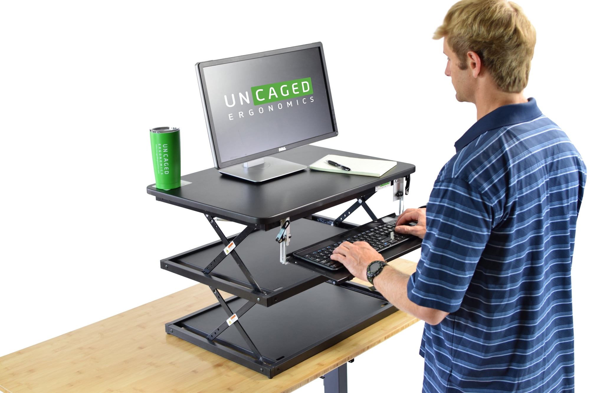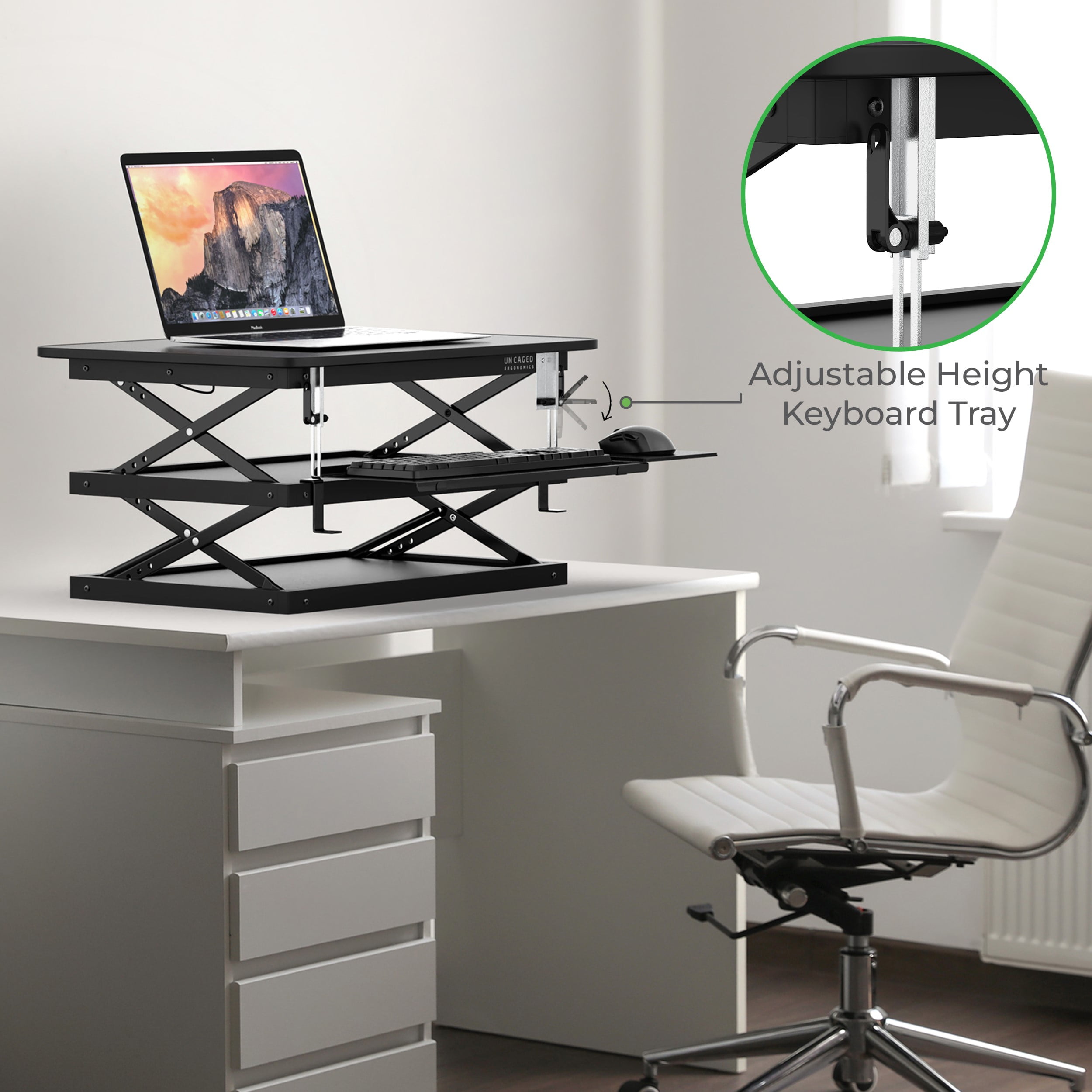 Revolutionize Your Workspace – This standing desk extender lets you achieve eye-level monitor positioning and ergonomic keyboard placement for ultimate comfort and productivity. Our sit to stand desk converter allows you to easily adjust your position, extending from 4.5″ to 21.5″. Customized Comfort at Your Fingertips – With our desktop standing desk topper, you have total control. Independently adjust the keyboard height to your liking, even dropping it below desk-level when seated. Boost Your Productivity – Designed for laptops and single monitors, our standing desk riser for standing or sitting enhances your workflow. The adjustable standing desk riser creates an ergonomic workspace that enhances your efficiency and allows you to work faster. Your Path to Seamless Ergonomics – Our versatile sit to stand desk converter to standing is tailored for laptops and single monitors. Optimize both seated and standing postures with a desktop stand up desk riser. Experience simplicity, sturdiness, and safety, all in one ergonomic solution for your workspace. Unmatched Durability – Uncaged Ergonomics stand up desk converter boasts a safe and solid construction. The desktop standing desk converter is crafted for lasting durability, it’s your reliable companion for a more productive work environment.