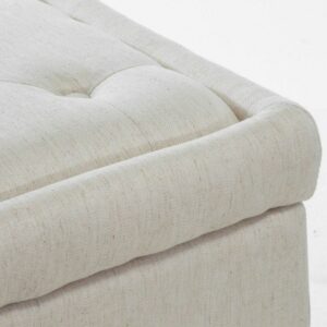 The multi-functional Chantelle Faux Suede Storage Ottoman with plush tufted top can be used as comfortable living room seating or an accent table and it features a hidden compartment perfect for storing blankets and other linens. The sophisticated design is upholstered in soft faux suede in your choice of color and stands on beautifully crafted dark wood legs finished in rich espresso.