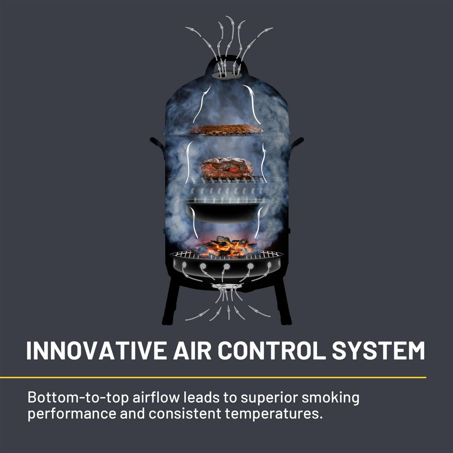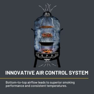 – Innovative air control system to take control of your food smoking experience and fine-tune the temperature to achieve the ideal level of smokiness
