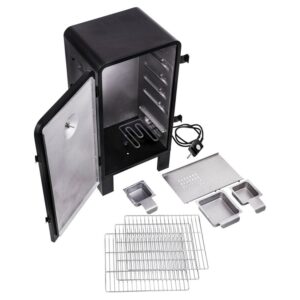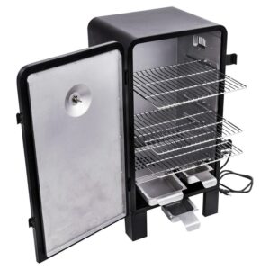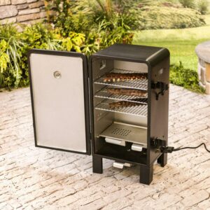 Enjoy an easier to control option for smoking meats to perfection with the Char-Broil Analog Electric Smoker. This electric smoker offers a spacious interior with removable grates, perfect for cooking meats large and small. Its frame is rendered from cold-rolled steel with a protective black finish. An analog electric control makes it easy to set and maintain temperatures with a front-mounted gauge to monitor proceedings.
