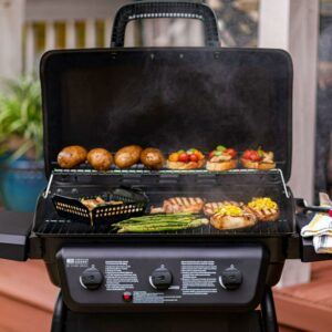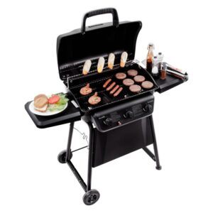 The Char-Broil Classic Series 3-burner propane gas grill features 360-square-inches of cooking space and 30,000 BTUs of cooking power. It’s a mid-size grill with stainless steel burners for even heat and a porcelain-coated cooking grate to prevent food from sticking. The lid and firebox are constructed from porcelain-coated steel to stand up to the elements and the Piezo ignition ensures fast and reliable starts. It has a warming rack to keep your food warm and away from direct heat and two metal side shelves to hold your seasonings and toppings. With the Char-Broil Classic Series 3-Burner Gas Grill on hand, you can hold barbecue nights whenever you want. Assembled dimensions: 43.5″Hx51.2″Wx24.1″D and weighs 55.47 lbs. Part number 463773717.