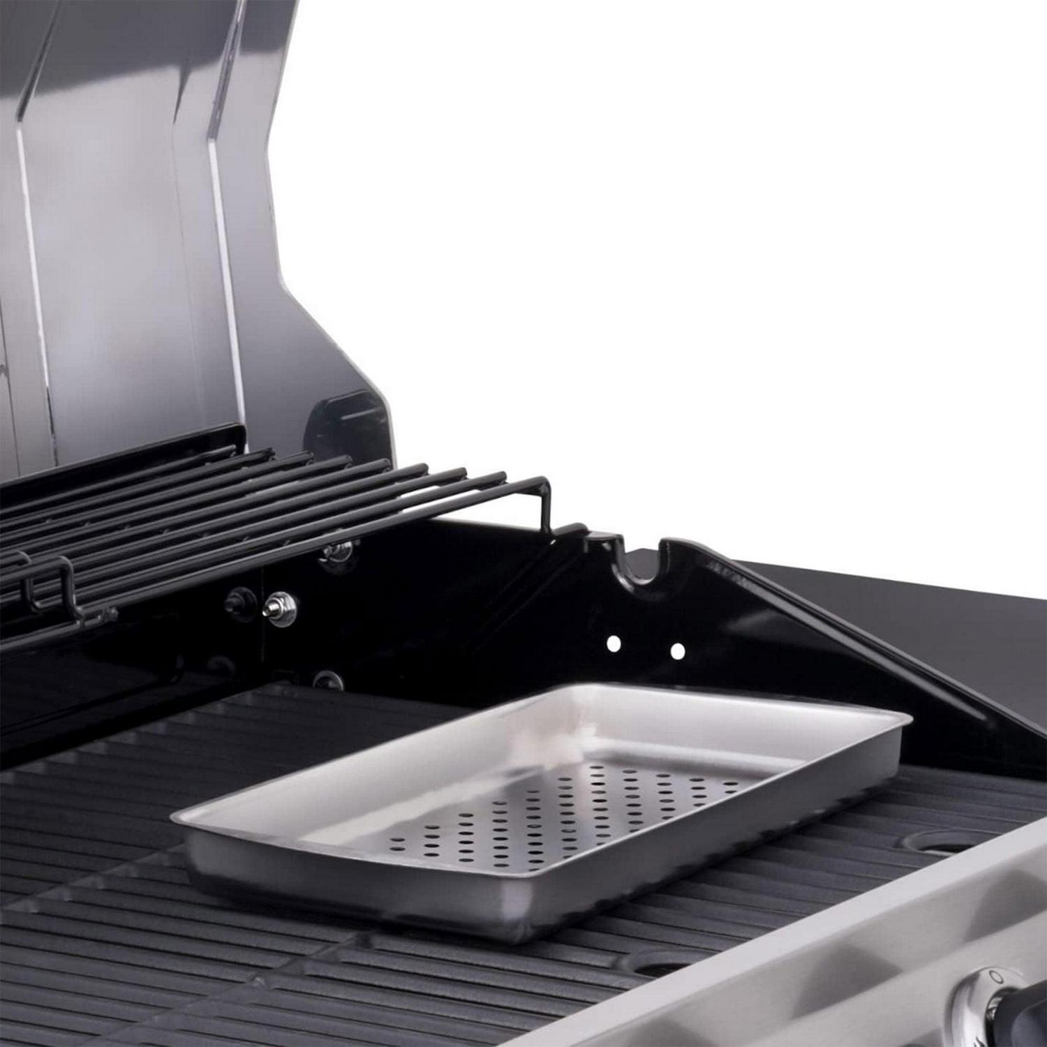 - Includes a Chef’s Delite tray for indirect cooking, sides, or toasting buns