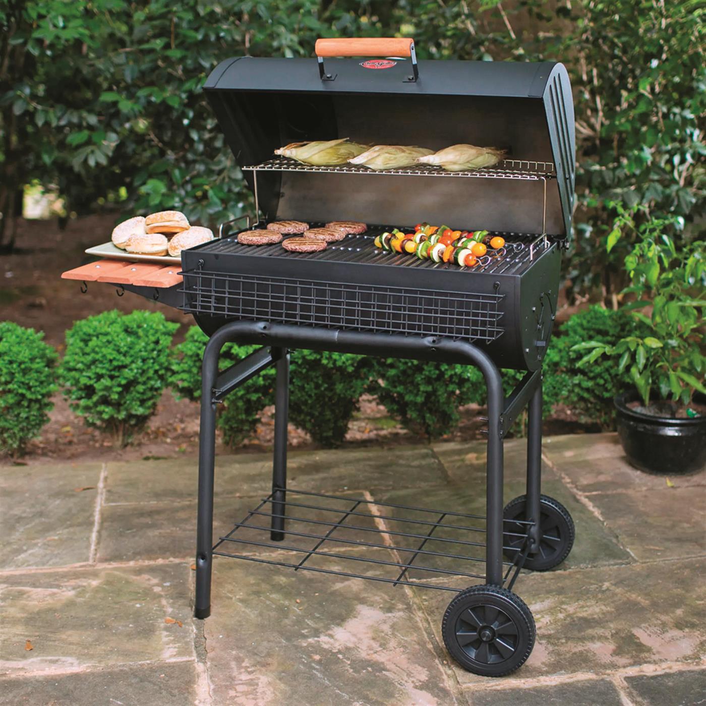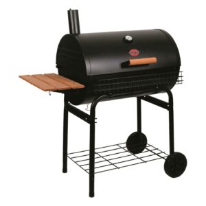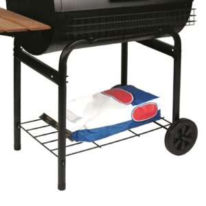 Grill like the professionals with the Char-Griller Deluxe Griller Charcoal Grill. Enjoy 850 sq. in of total cooking area, enough for 5 racks of ribs, 12 steaks, 24 burgers or 42 hot dogs. Cast iron cooking grates and the Easy Dump ash pan make cleanup quick and easy. Plus, wheels make the grill easy to move around 850 sq. in. of total cooking area; Big enough for 5 racks of ribs, 12 steaks, 24 burgers or 42 hot dogs; Cast iron cooking grates; Easy Dump ash pan; Temperature gauge; Front storage basket; Adjustable fire grate; Powder coating finish; Bottom storage rack; Utensil hooks; Warming rack; Dual damper control; Rotisserie adaptable; Side fire box compatible; Heavy-duty steel construction; One year limited warranty; Dimensions: 26 d. x 44 w. x 50″ h.; Weight: 84 lbs.; Mfg. Number: 2828