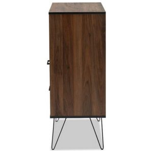 - Two-tone black and walnut brown finish