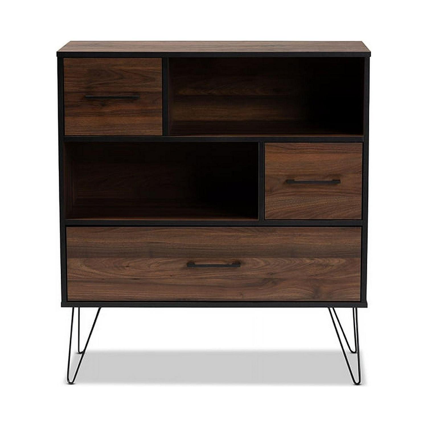 Charis Modern and Transitional Two-Tone Walnut Brown and Black Finished Wood 1-Drawer Bookcase