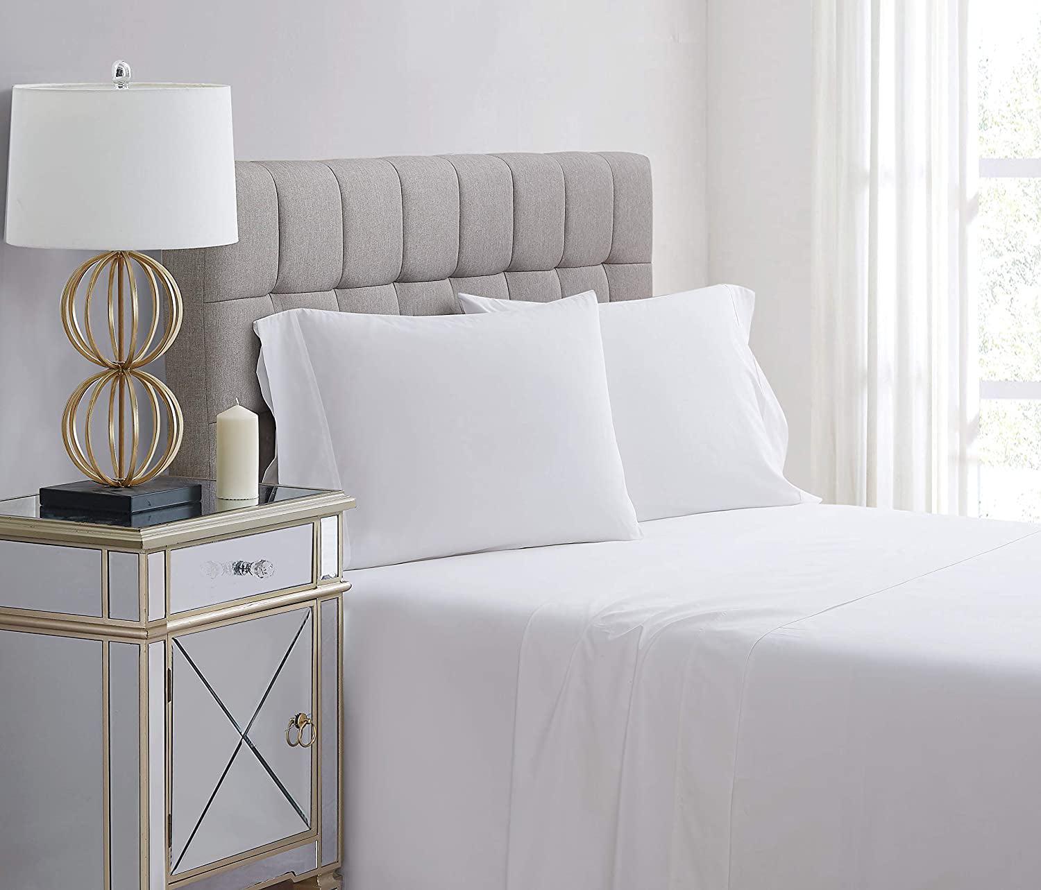 100% 400 Thread Count Percale Cotton,Includes one fitted sheet (60×80 inches) with 19 inch pocket to fit up to a 22 inch deep mattress, one flat sheet ( inches), and two pillowcases (21×32 inches),Percale is a lightweight matte weave, great for creating ultra breathable sheets that are ideal for warmer weather.,Long staple cotton creates softer and tighter sheets that last longer.,Woven with long staple cotton in 400 thread count. The higher count and special Charisma treatment resists pulls, pilling, or fading even when machine washed.,Charisma’s high standards caters to customers that can recognize quality and settle for nothing less. Only get the best for your home and sleep soundly in Charisma.