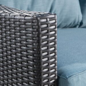 Charles Outdoor Gray Wicker Club Chairs with Teal Water Resistant Cushions (Set of 2)