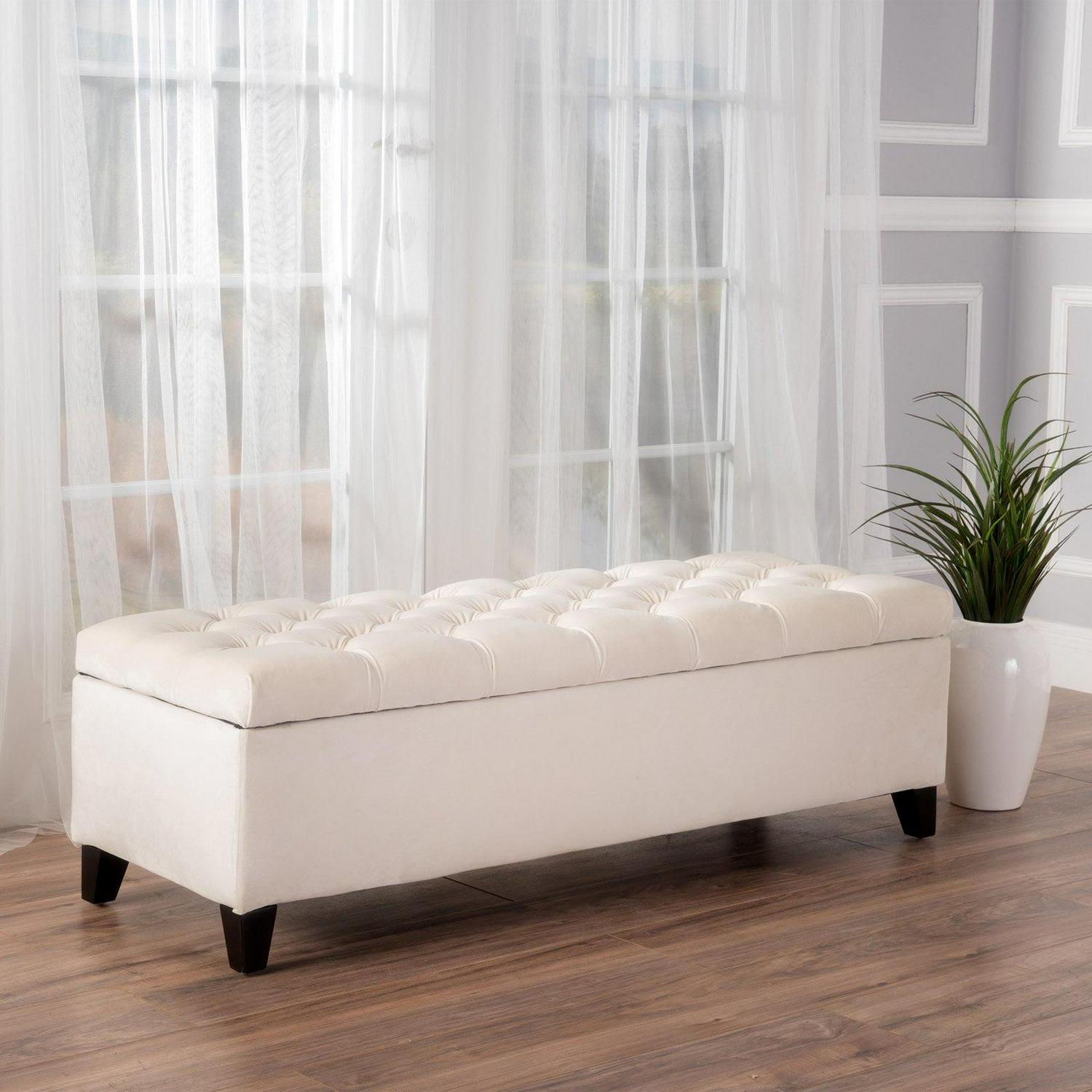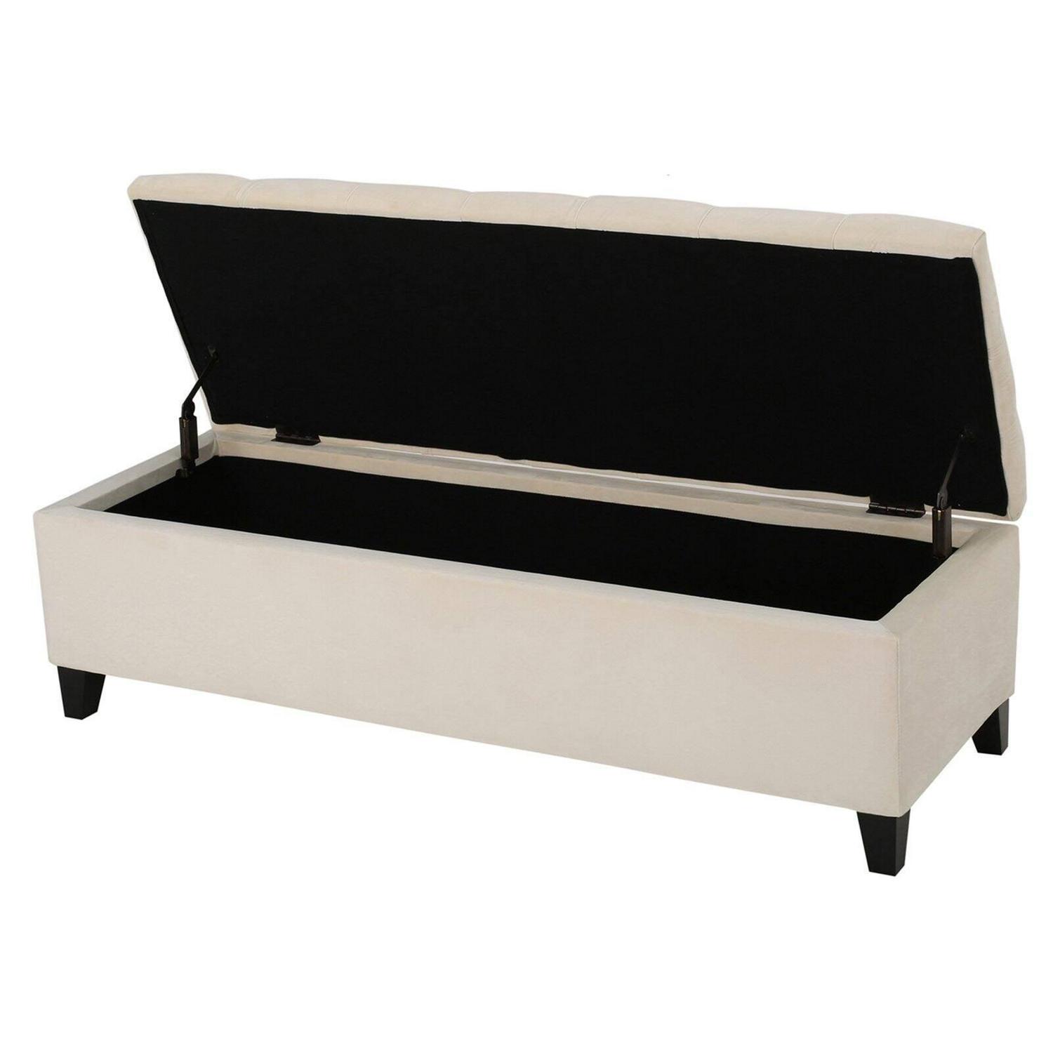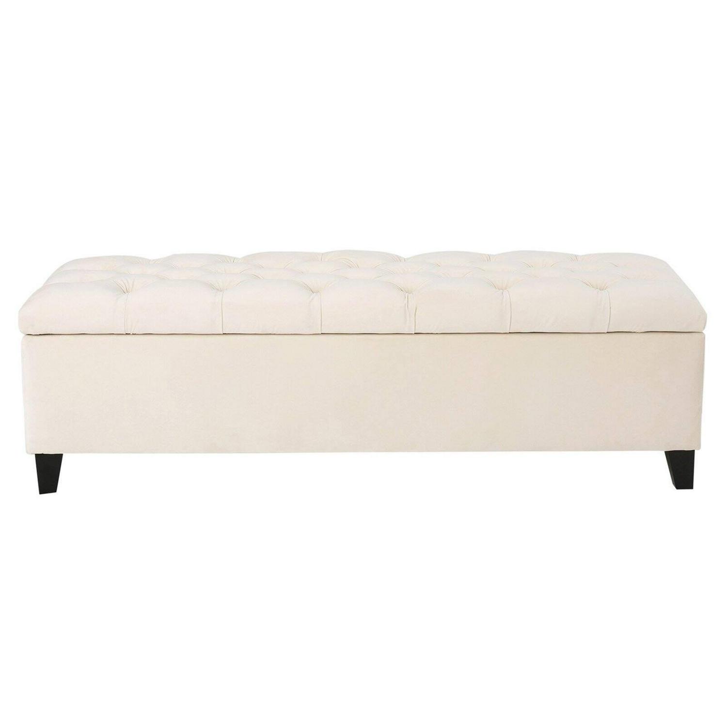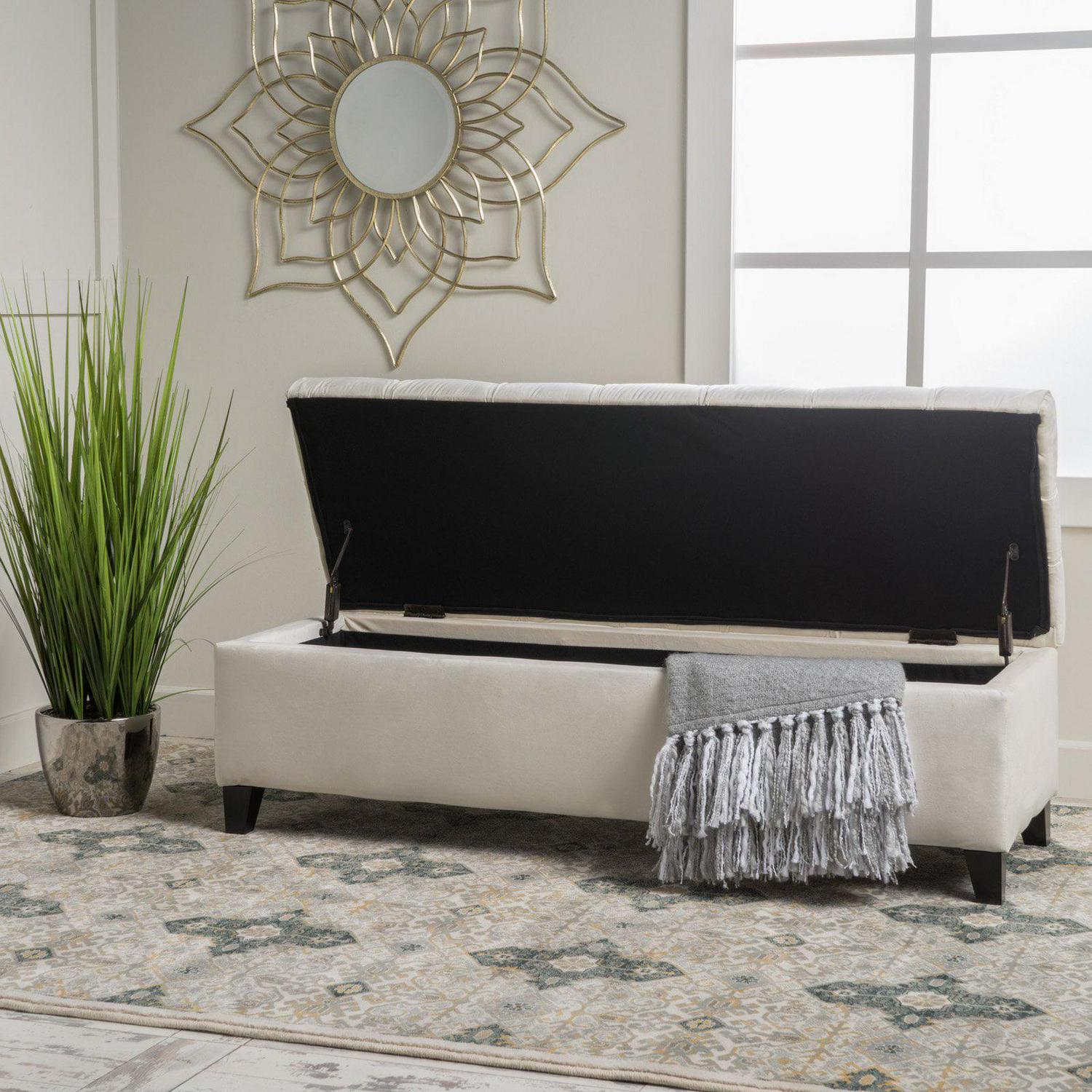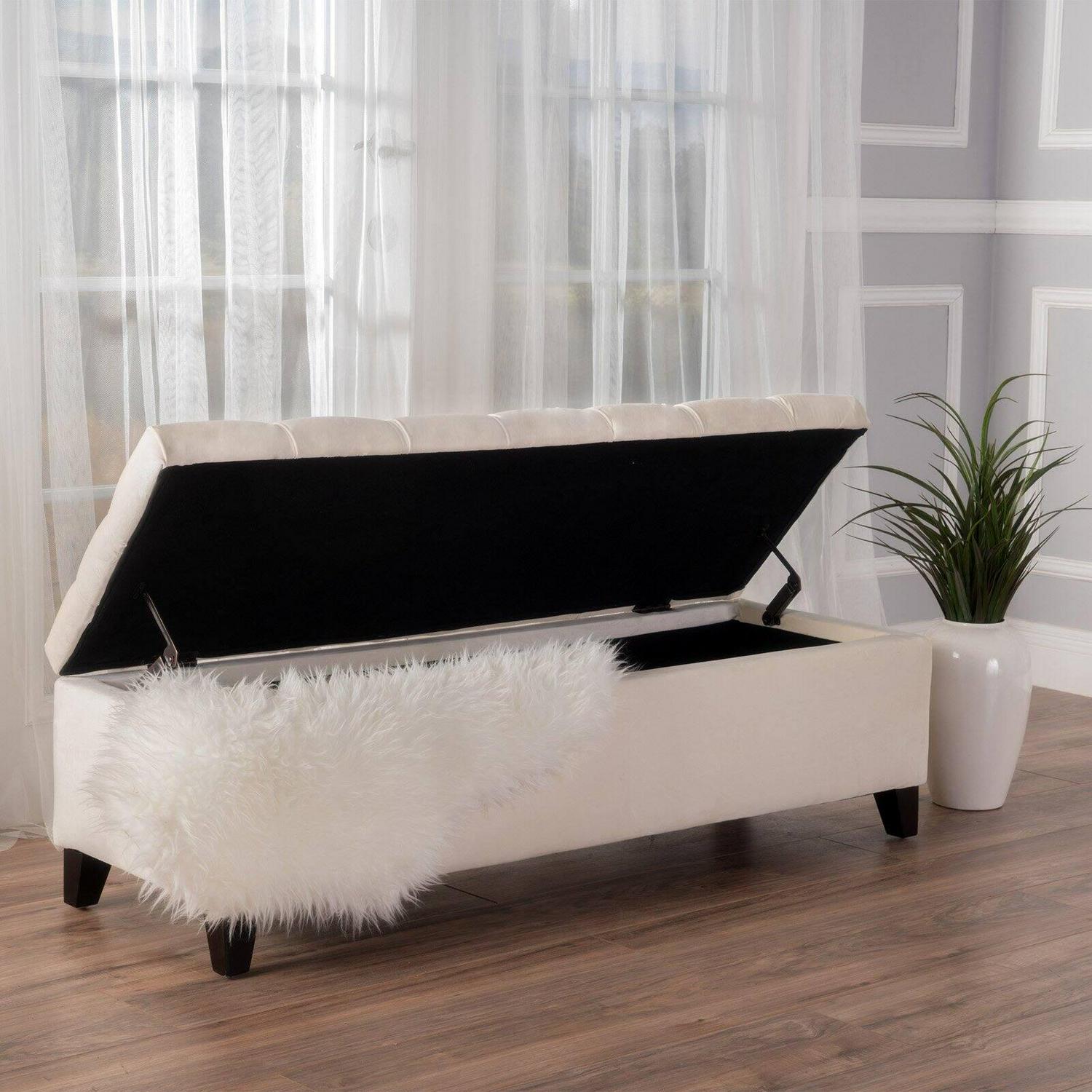 - Tufted, hinged lid and inner storage