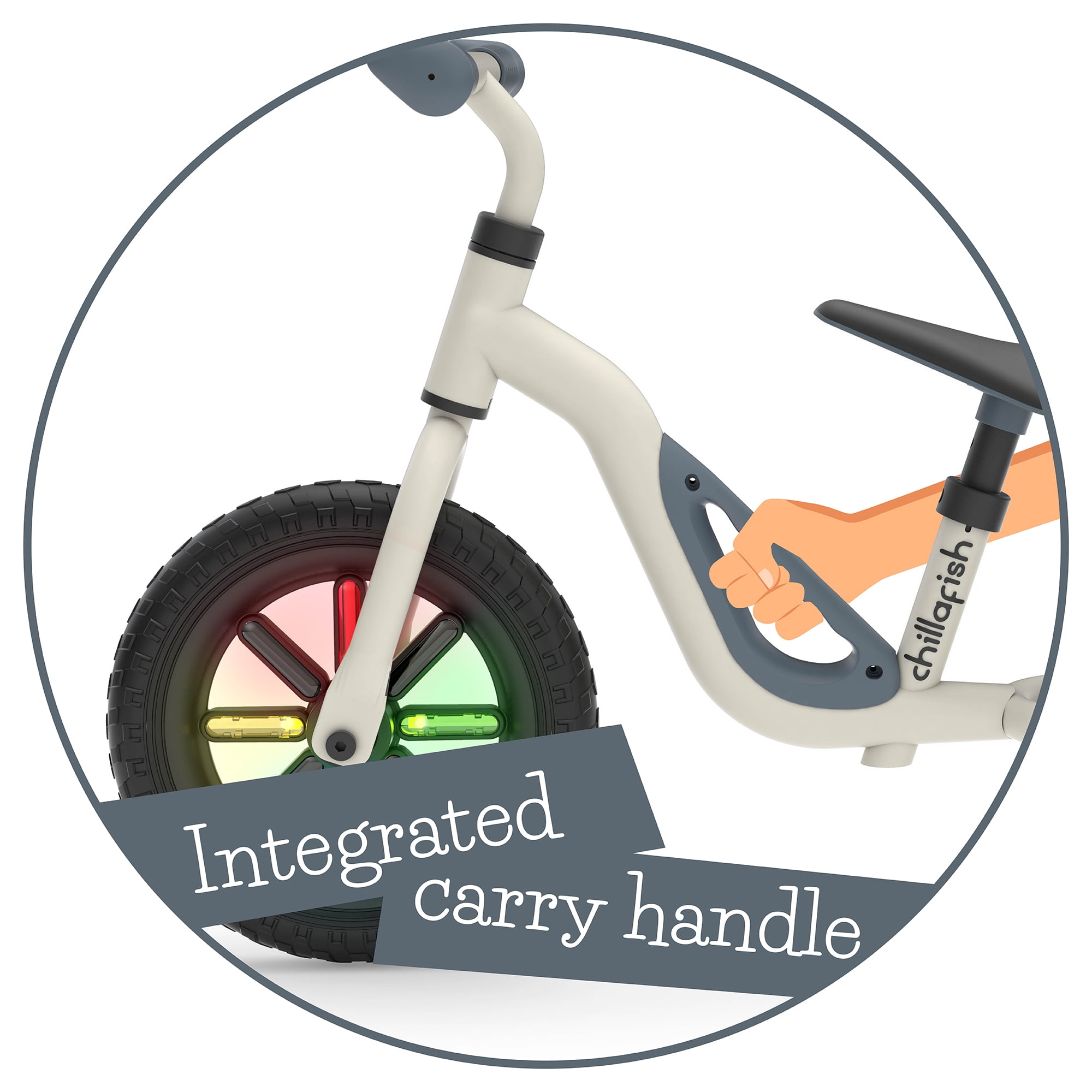 Charlie Glow Lightweight Balance Bike with Carry Handle and Light-up Wheels, Adjustable Seat and Handlebar, and Puncture-Proof 10-inch Tires, Beige