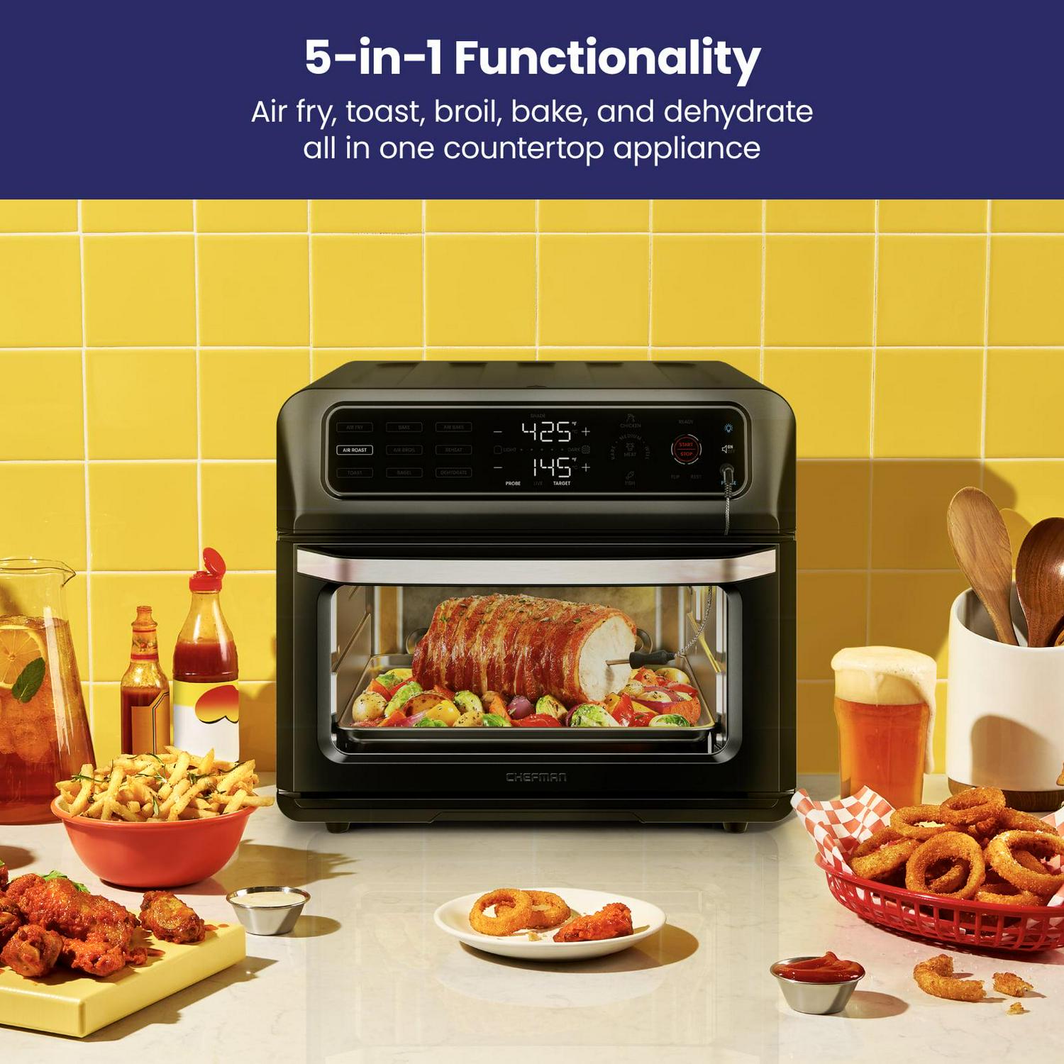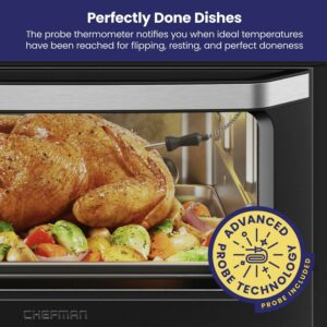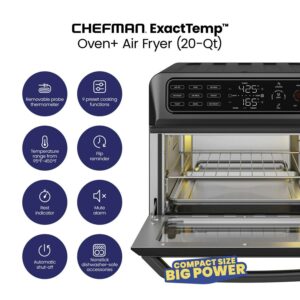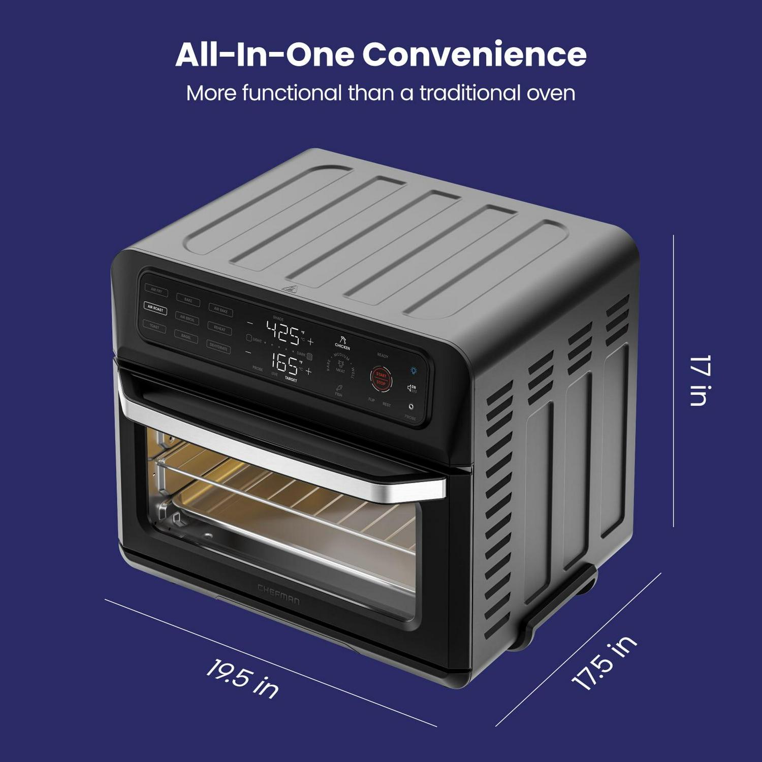 Chefman 12-in-1 Air Fryer Oven Combo w/ Probe Thermometer, 20 Qt Capacity, Black Stainless Steel