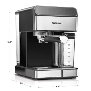 Chefman 6-in-1 Digital 15-Bar Pump Espresso Machine with Integrated Milk Frother, Stainless Steel