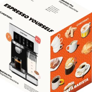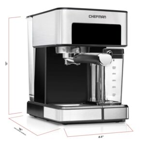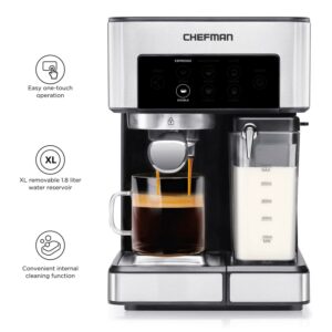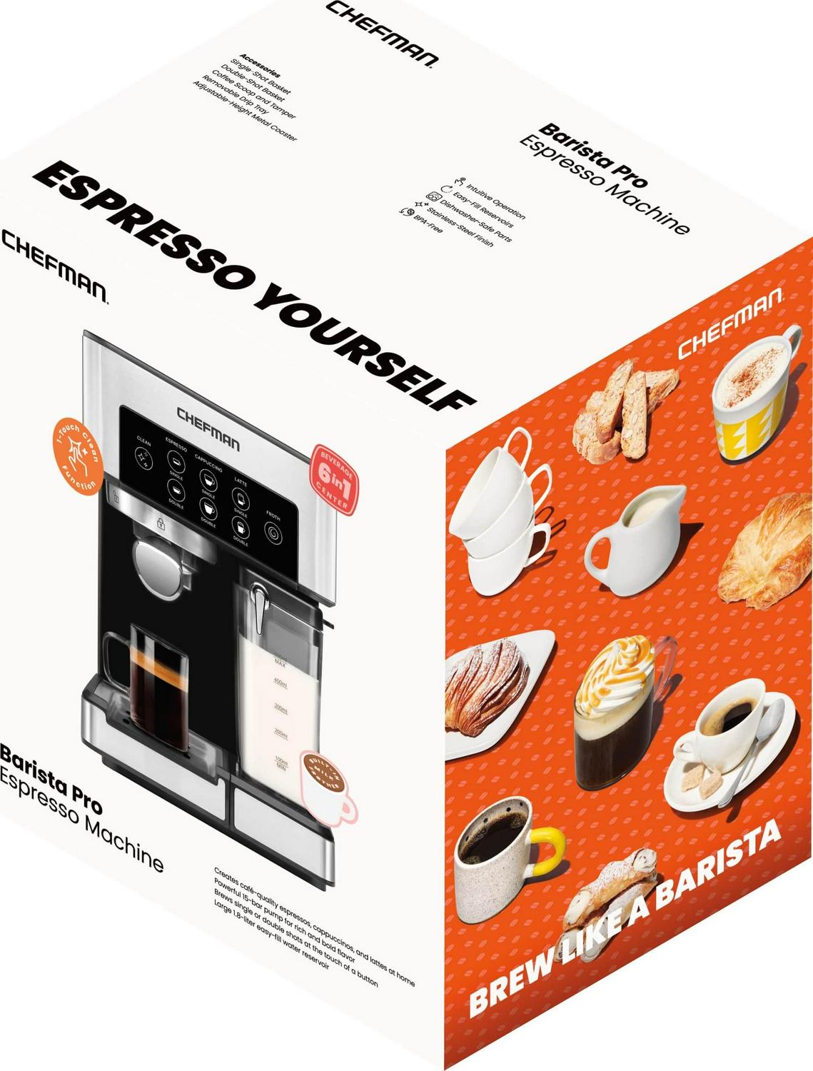 Chefman Barista Pro 6-in-1 Espresso Machine with Milk Frother, 15-BAR Pump, 1.8L Water Reservoir, Stainless Steel