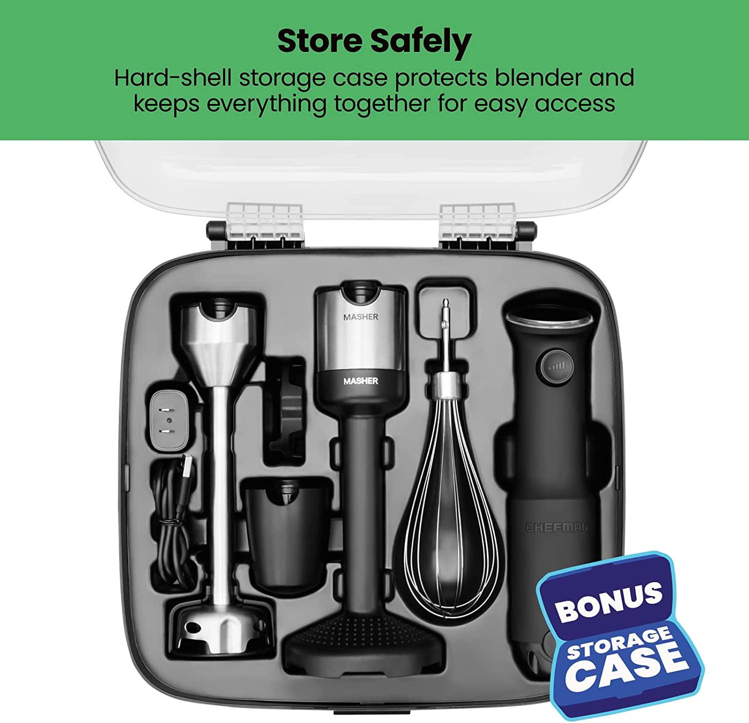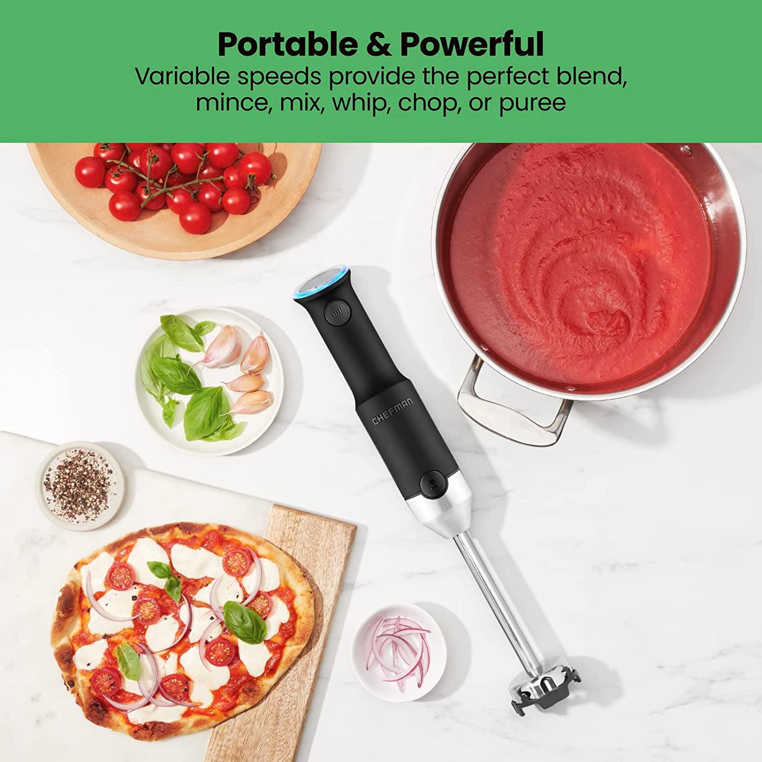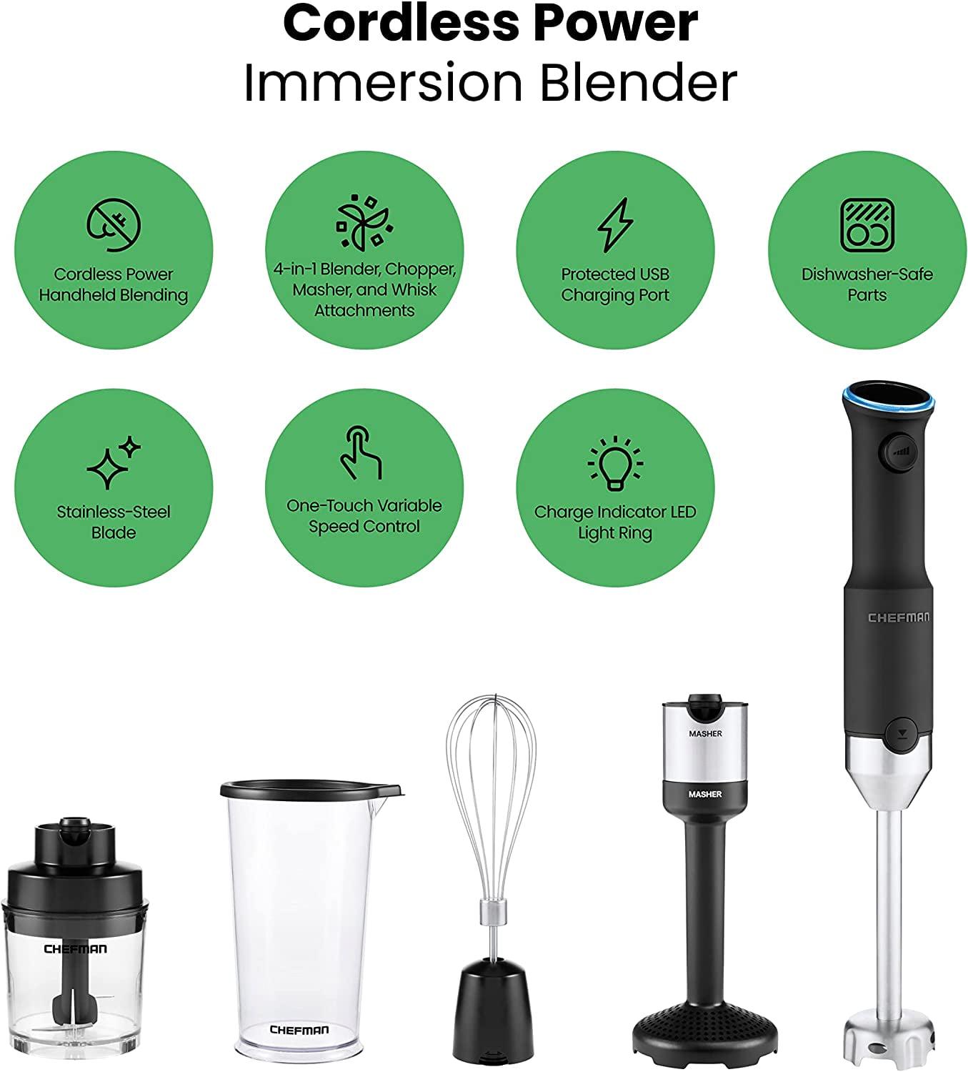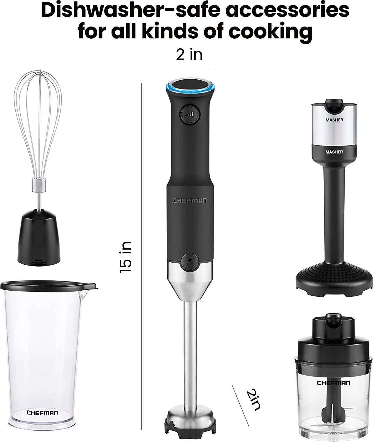 Chefman Cordless 5-in-1 Immersion Blender Set, Ice Crushing, Masher, Whisk, Chopper, Stainless Steel
