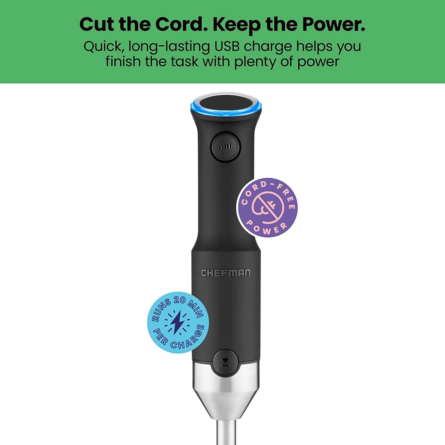 – CORDLESS FREEDOM: Move freely around your busy kitchen with this rechargeable hand blender/mixer. Get up to 20 minutes of cord-free blending power from each charge.