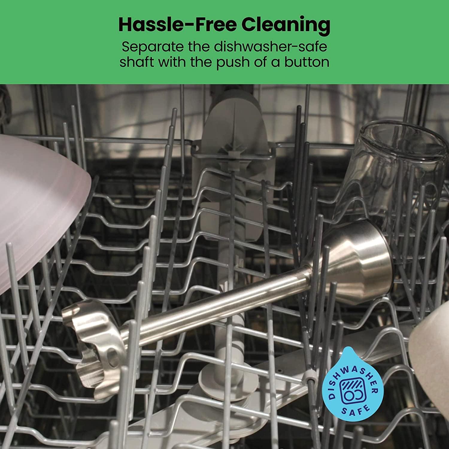 – EASY-CLEAN PARTS: Cleaning your immersion blender has never been simpler with the detachable, dishwasher-safe attachments. Attachments quickly release with the push of a button.