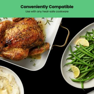 – HIGH QUALITY: Can be used with all heat safe cookware and bakeware; aluminum or glass baking pans, casserole dishes, pots, pans & more! Cool touch aluminum handles for convenient transport and added safety.