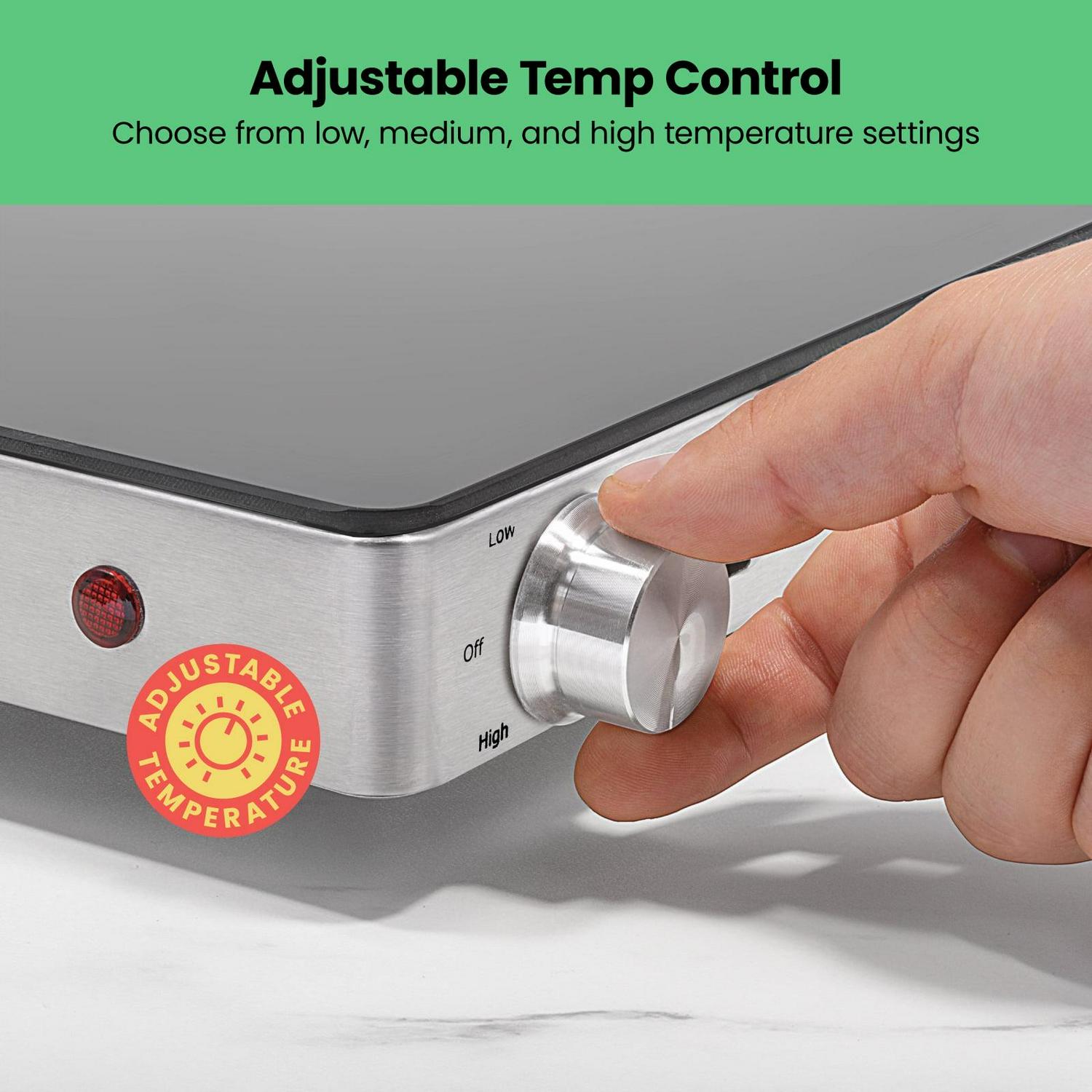 – FAMILY SIZE WARMING TRAY: The 21 x 16 surface hot plate can fit several dishes at once and looks great on any countertop, table, or buffet. The adjustable temperature control and size makes it suitable for family dinners, Sunday football gatherings, holiday meals, or other big parties and events.
