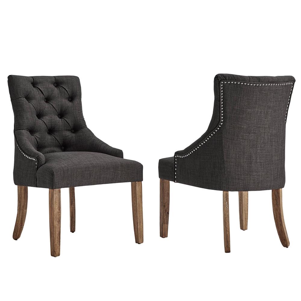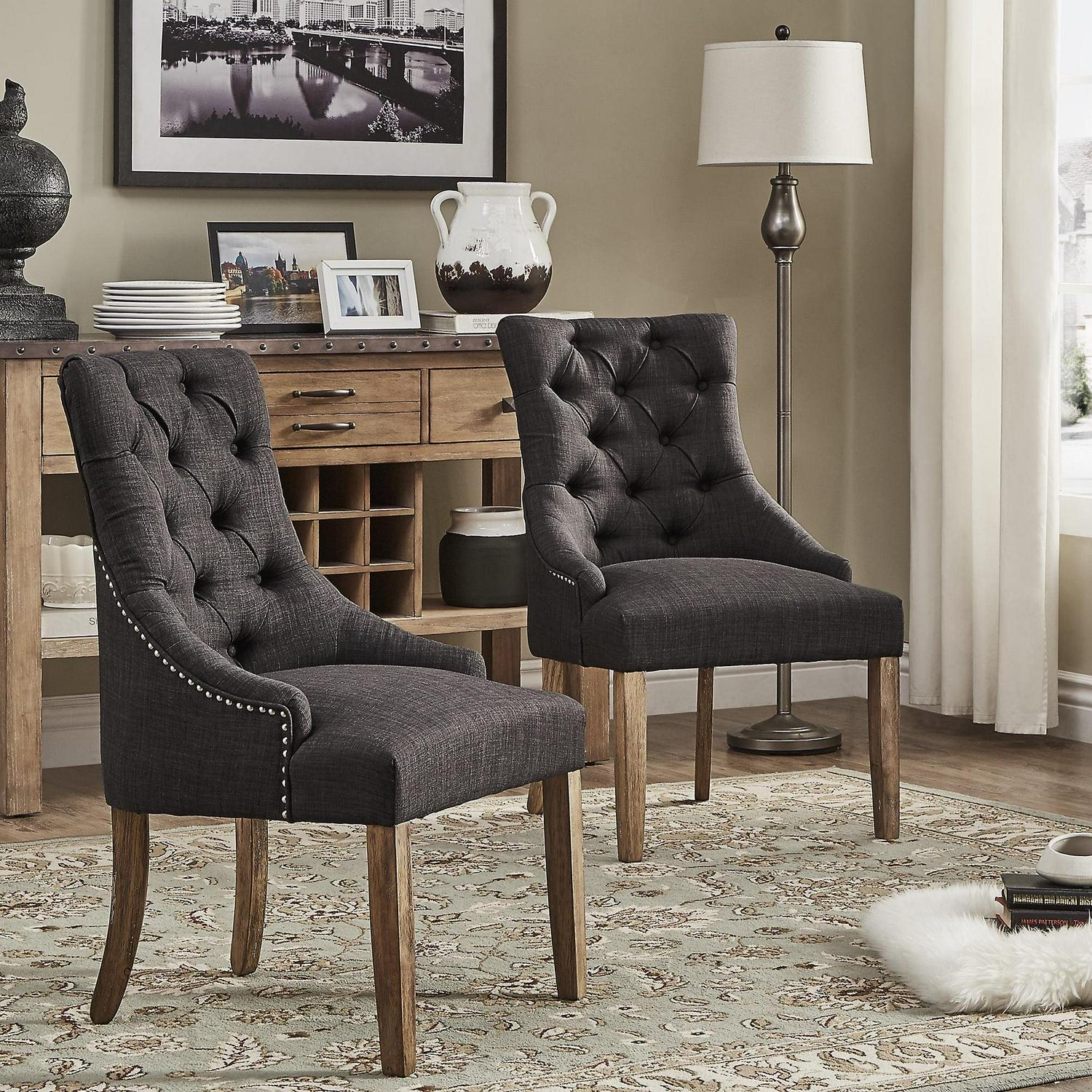Chelsea Lane Curved Back Linen Tufted Dining Chair, Set of 2, Dark Gray