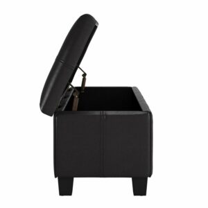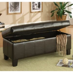 You’ll love the handsome style of the Lift Top Storage Bench so much you’ll forget it offers lots of convenient storage too. The deep mocha brown faux leather is durable and washable, stain-resistant and just plain gorgeous. Top lifts easily for storage of books, electronics or anything you want out of sight.