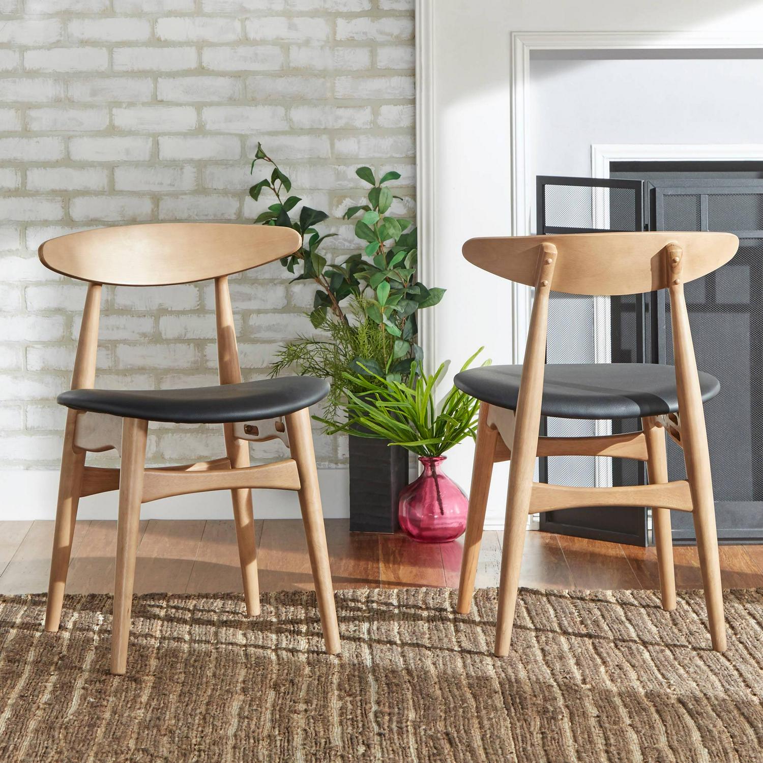 Chelsea Lane Mid Century Modern Black Faux Leather Wood Side Chairs, Set of 2, Ash Finish