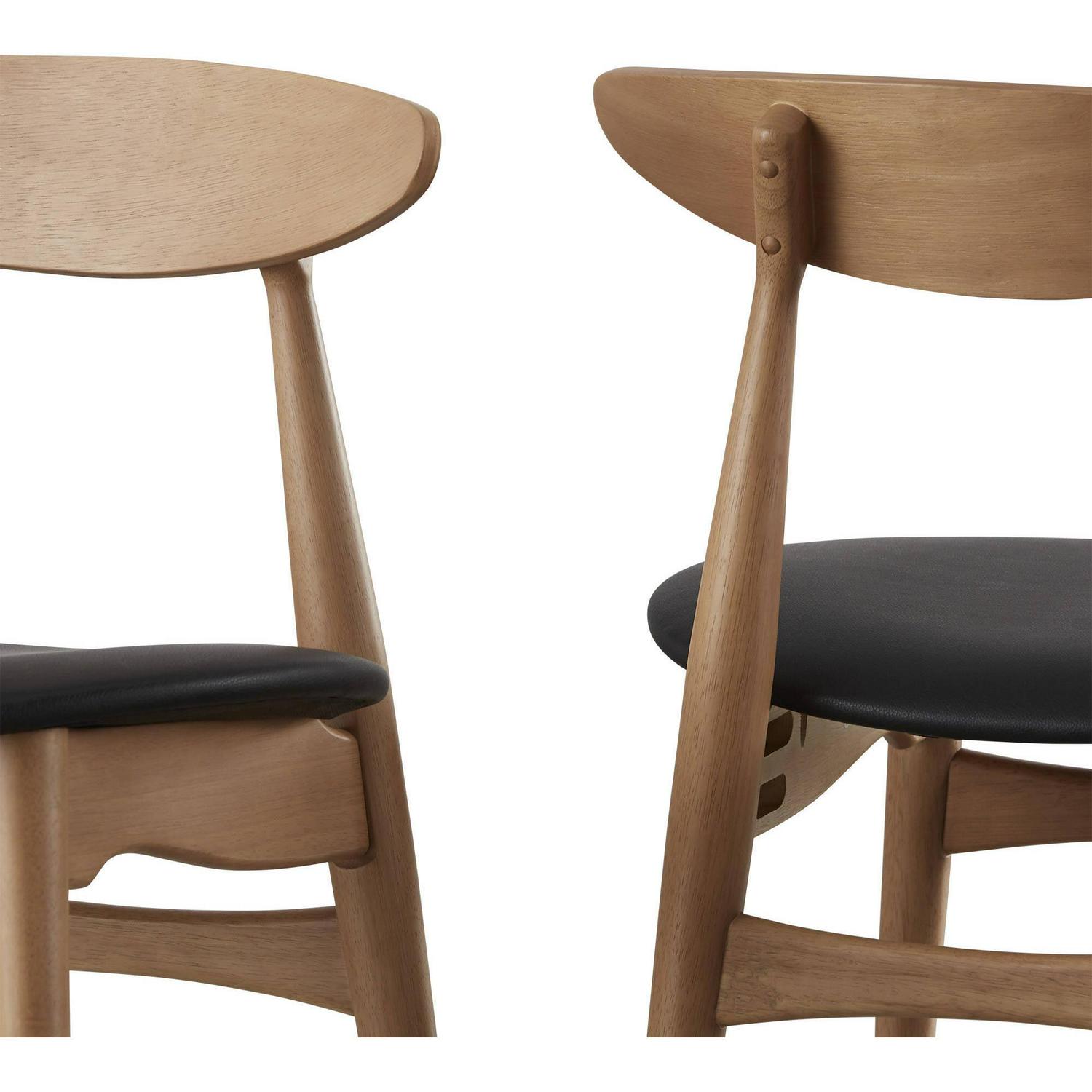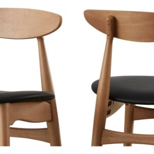 Add a sense of style and functionality to your dinning room or eat-in kitchen! Taking cues from Mid Century Modern designs and combining them with contemporary livability, these sleek and simple dining chairs are the perfect complement to any retro inspired design. Featuring solid rubberwood construction, a natural grain, light wood finish, and durable faux leather upholstery, these timelessly styled chairs are made to withstand everyday use for years to come.