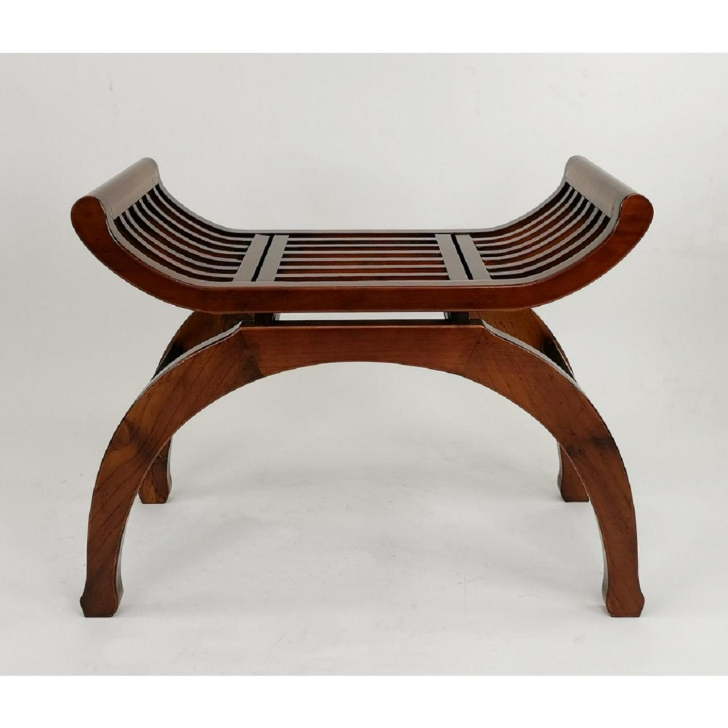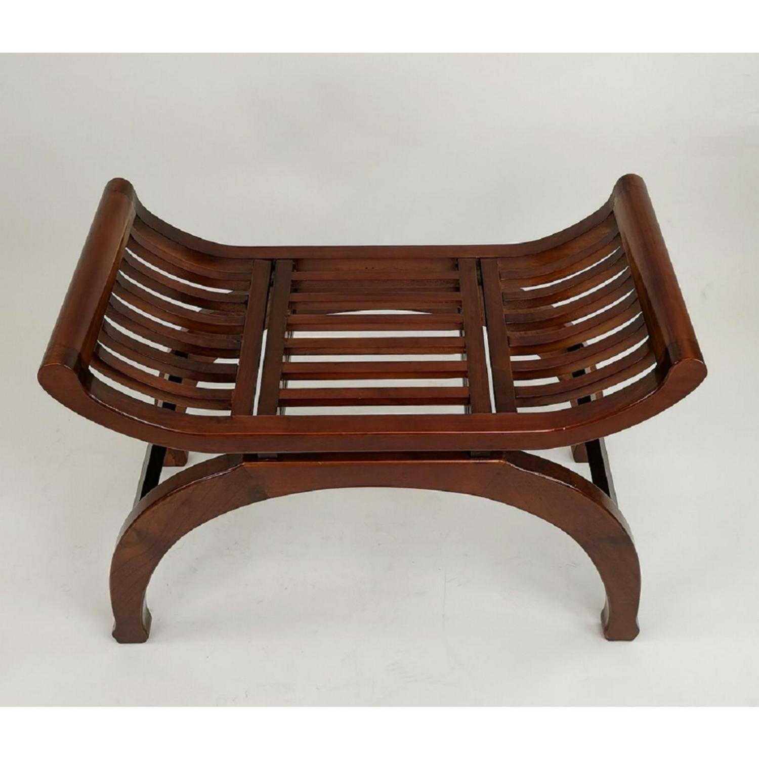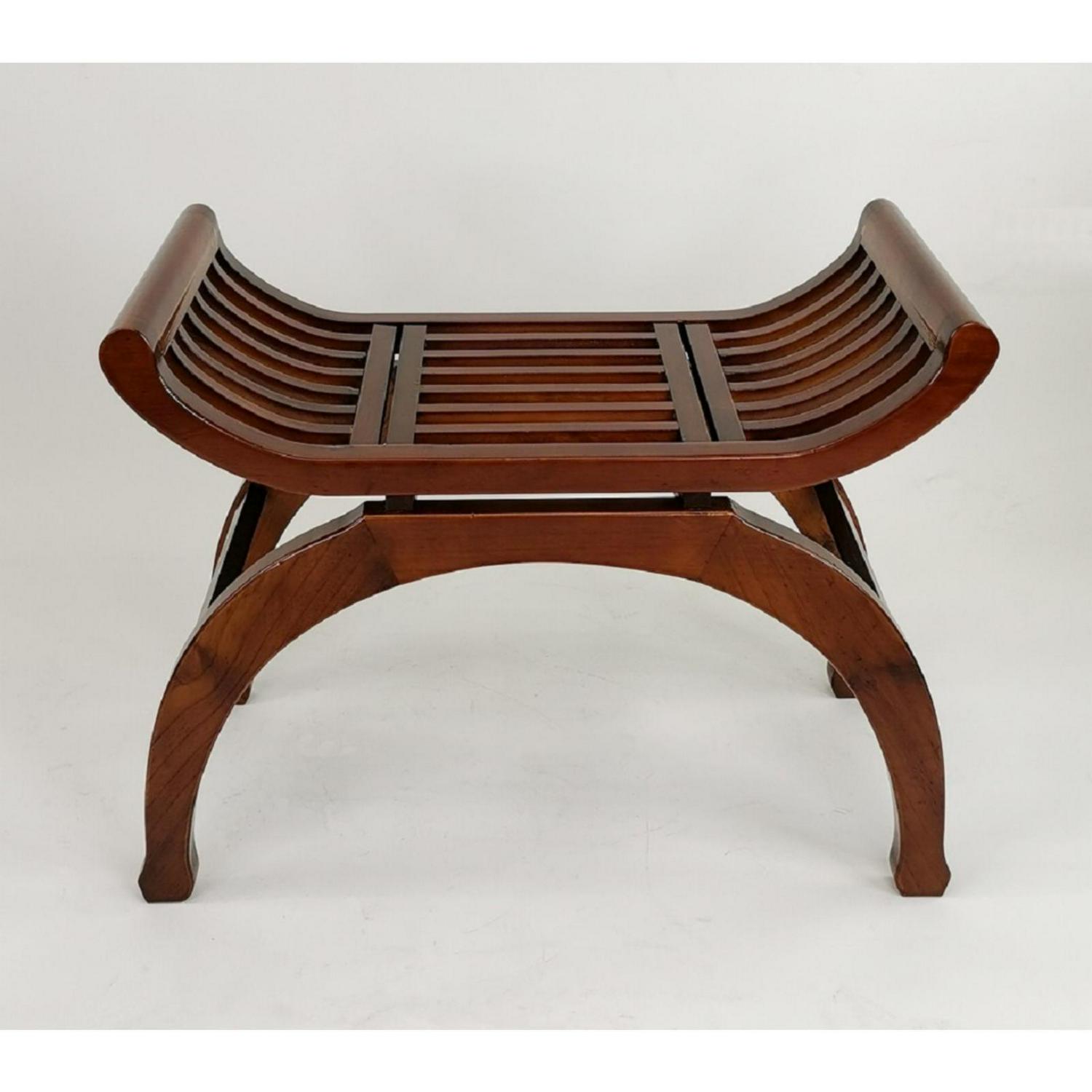 The Chengdu Bench highlights simple balance with its curving lines and intricate details. The deep finish is bold, and the slatted bench top is comfortable and unique, bringing global flair to any room it’s in. Use it as additional seating or an ottoman for extra versatility.