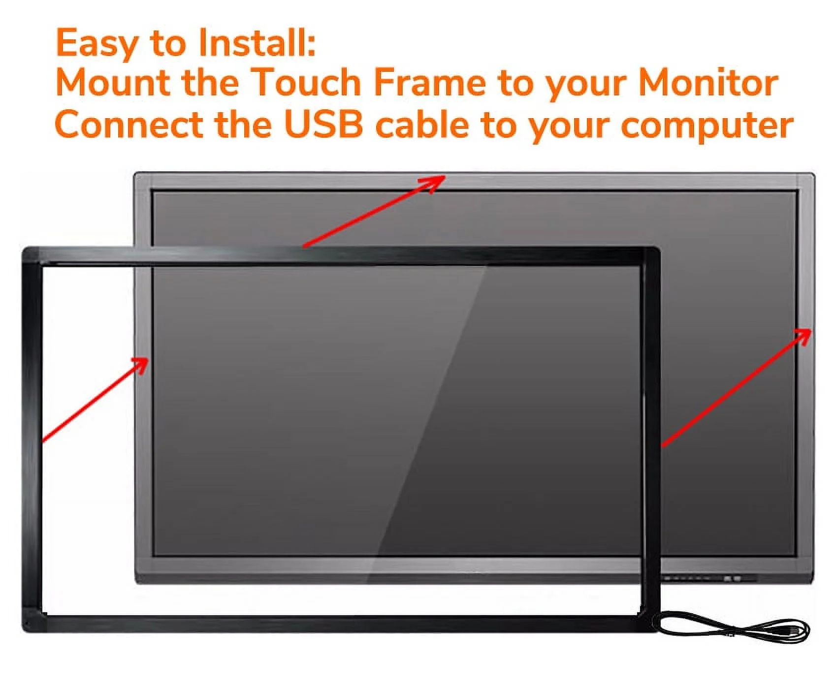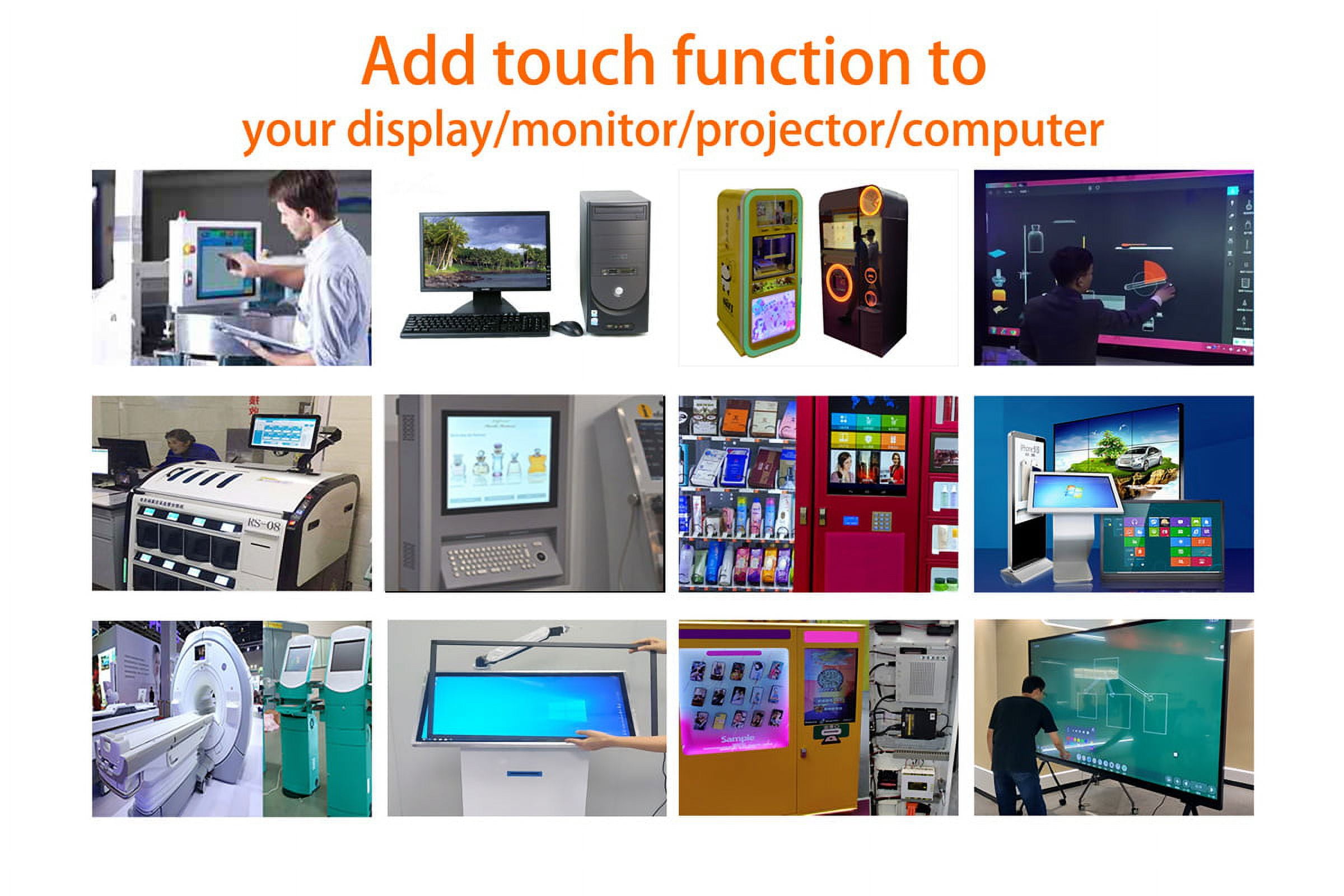 WORKING PRINCIPAL: Infrared Multi-touch Overlay is not a display, it is a touch pointing device. Usually installed in front of the display screen. Navigate the screen with your fingers instead of the mouse. All you have to do is simply assemble the Multi-touch overlay in front of your existing monitor or TV screen. You will have a new touch screen TV! Need to be used with a computer, USB connection. 1, Fully compatible with Windows OS,Win8, Win10, Win11, multi-touch supported(10 point touch). 2, On MacOS — only single touch. 3, On Android, Linux — single or multi touch (Requires built-in driver to support). 4, For Chrome, Raspberry Pi, or TV built-in OS — By default, these systems have no touch device driver and no touch function. Please inquiry system supplier if the system be have touch device driver before you order this item. APPLICATION: Automatic retail machines, checkout machines, express cabinets, ticket machines, bank terminals, inquiry machines, advertising machines, Interactive touch tables, Conference touch all-in-one machine, Interactive education whiteboard, Digital Signage, Kiosk, Exhibitions, TV Channels, Command Center and Boardroom