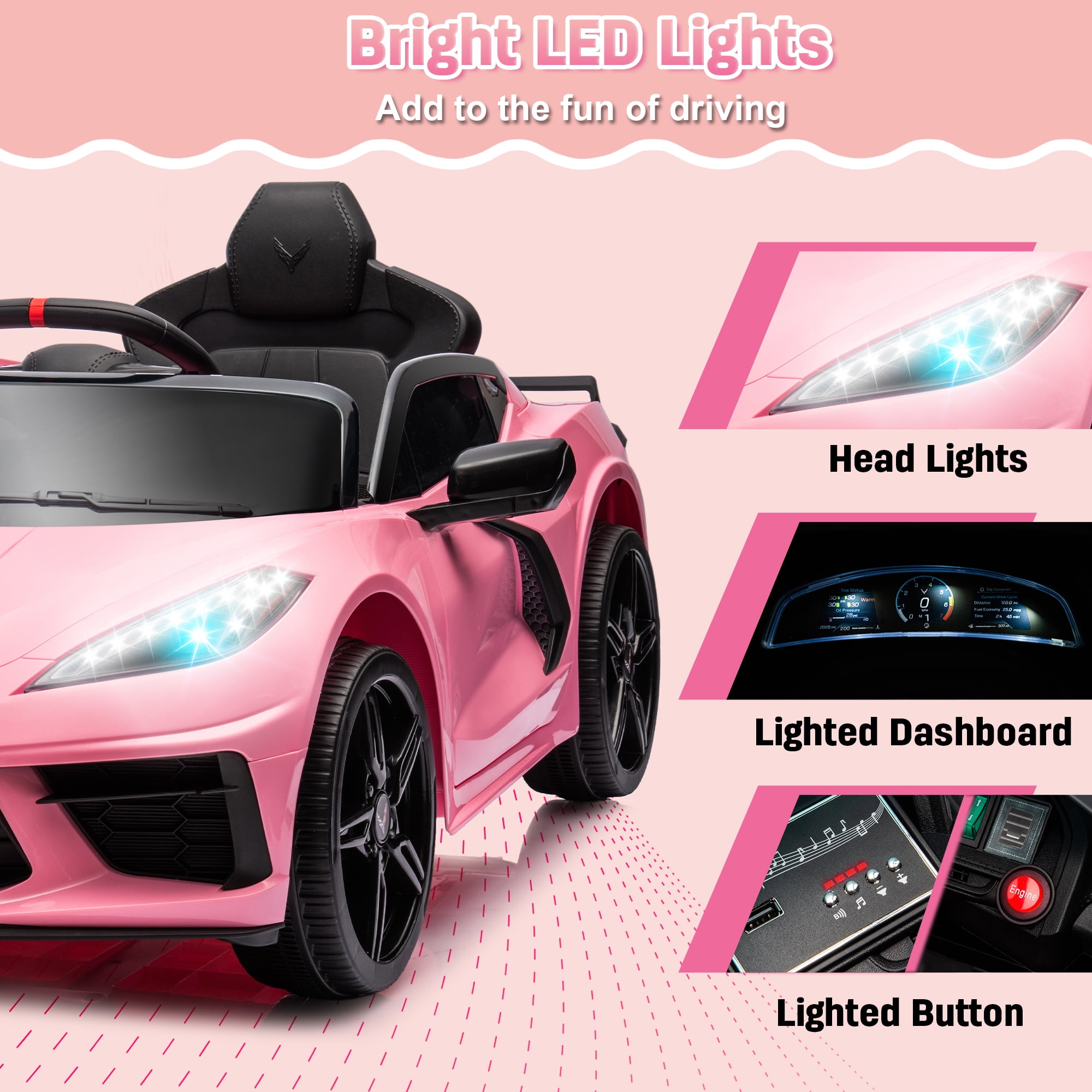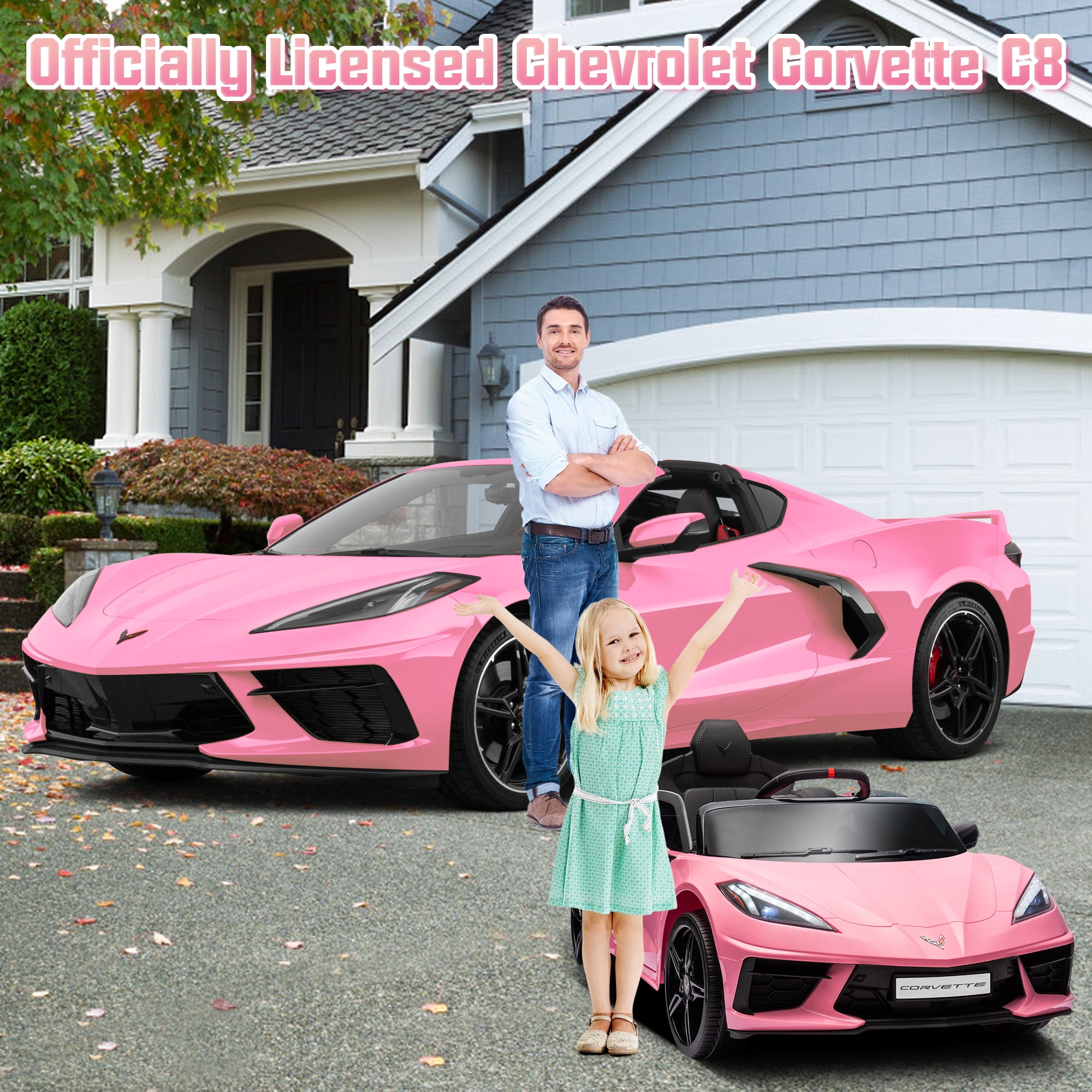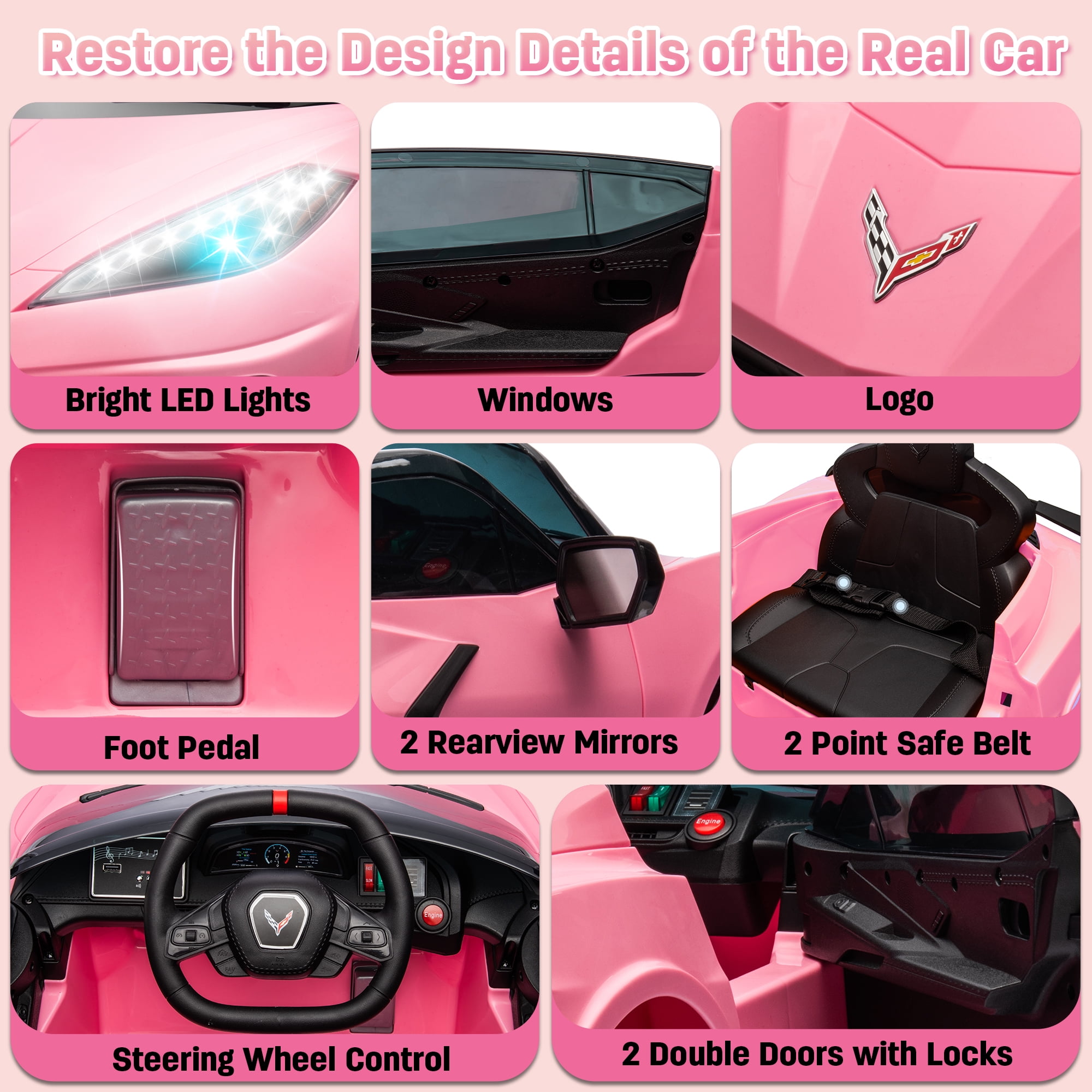 Chevrolet Corvette C8 Licensed Ride on Car,Wisairt 12 V Battery Powered Electric Vehicle w/ Remote Control,Bluetooth,LED Lights and Heightened Windows(Pink)
