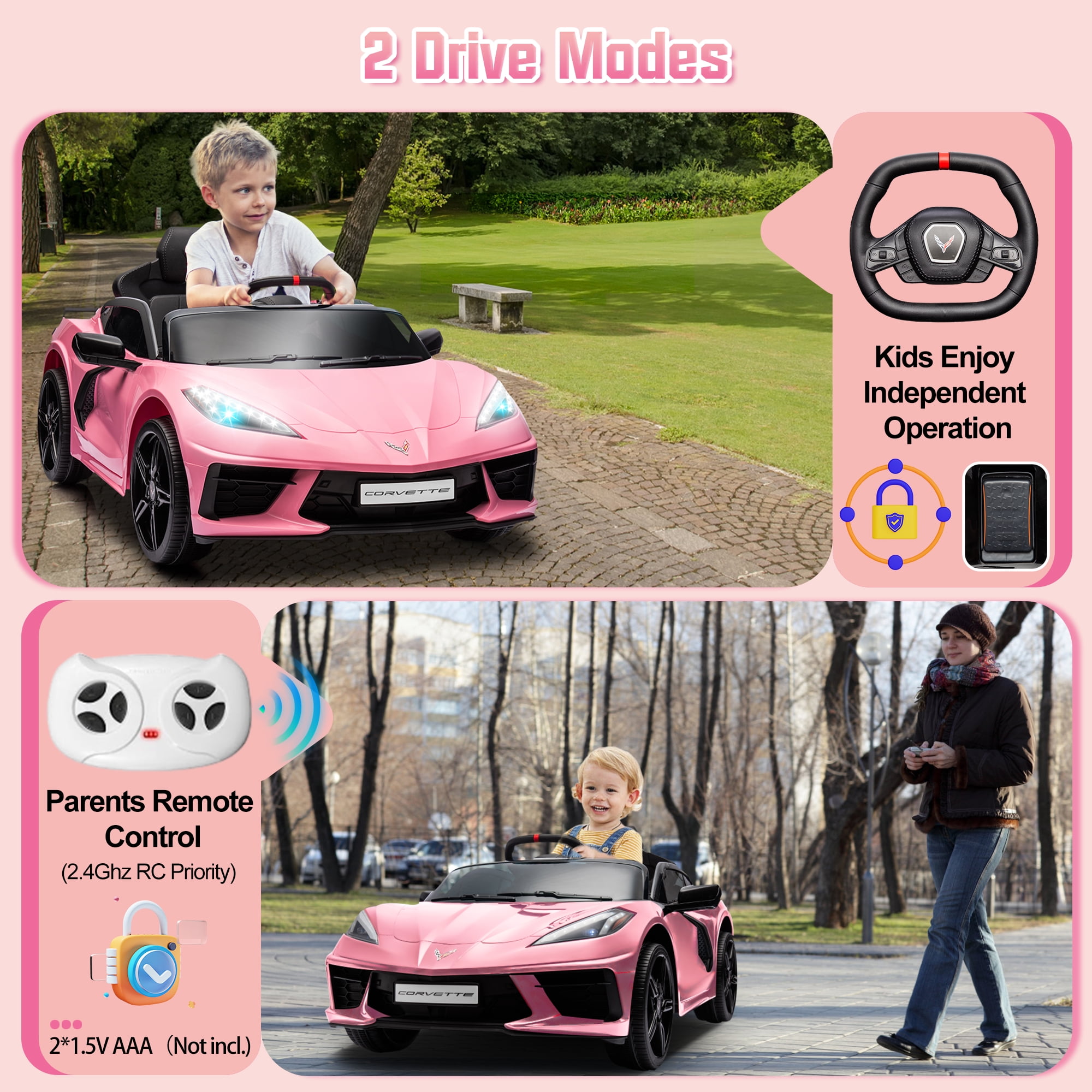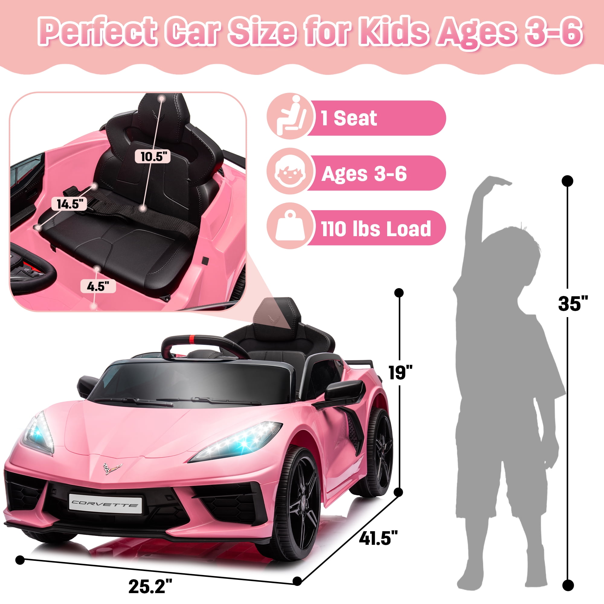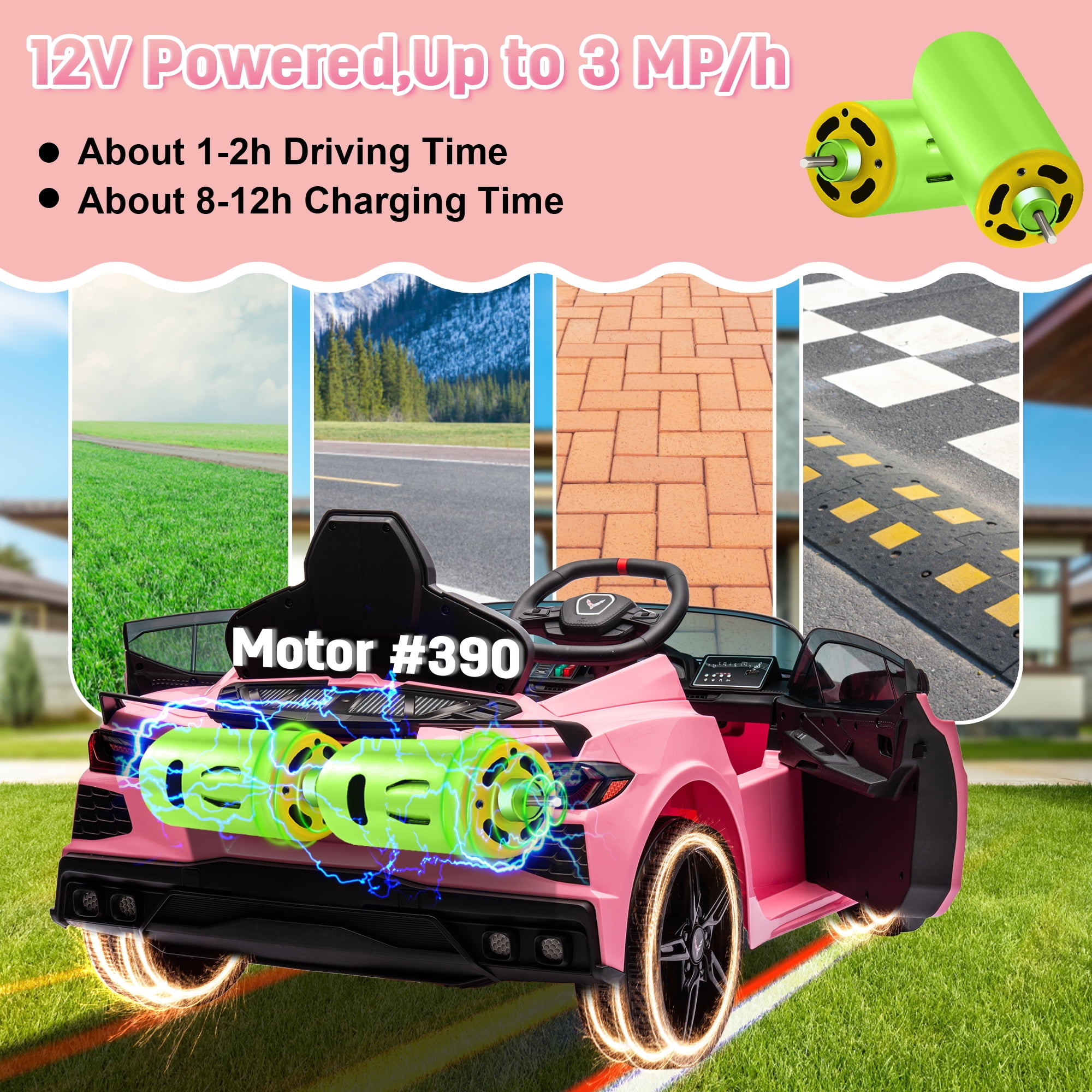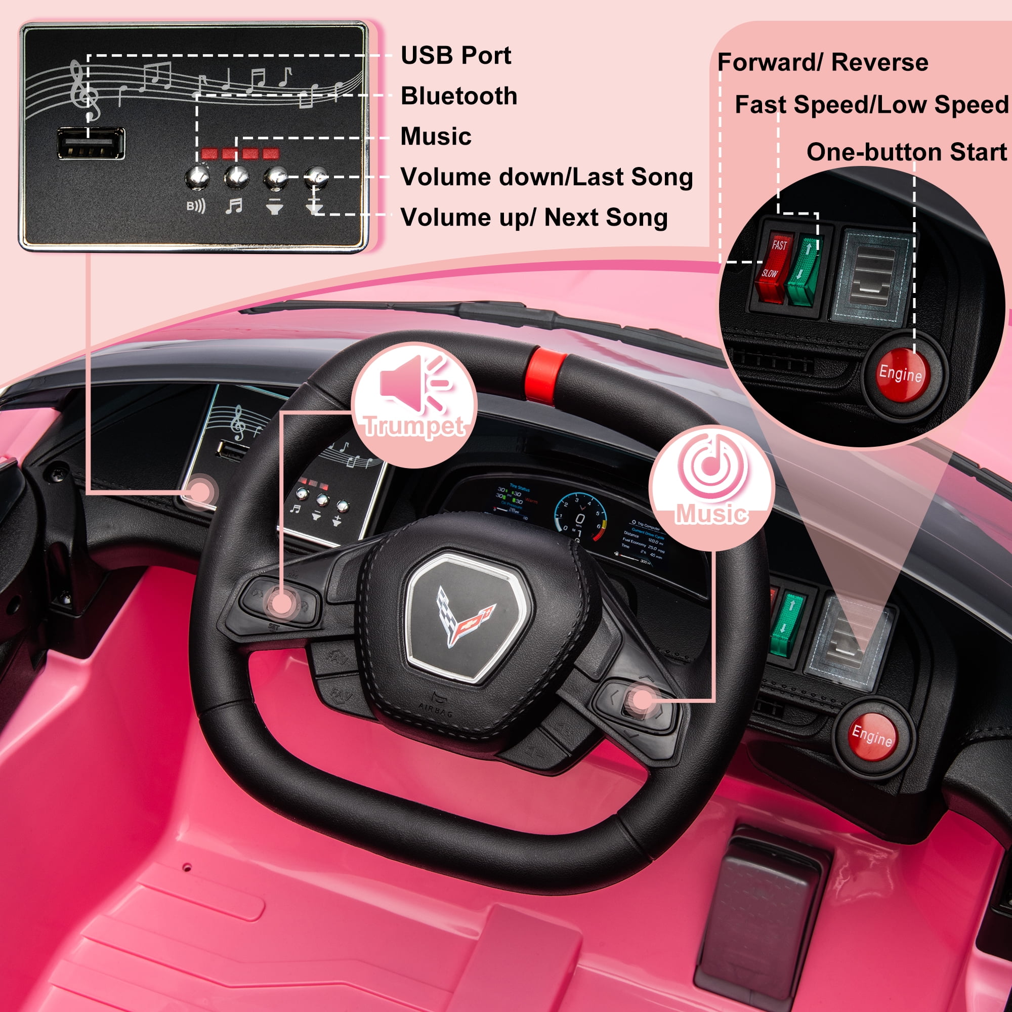 Chevrolet Corvette C8 Licensed Ride on Car,Wisairt 12 V Battery Powered Electric Vehicle w/ Remote Control,Bluetooth,LED Lights and Heightened Windows(Pink)