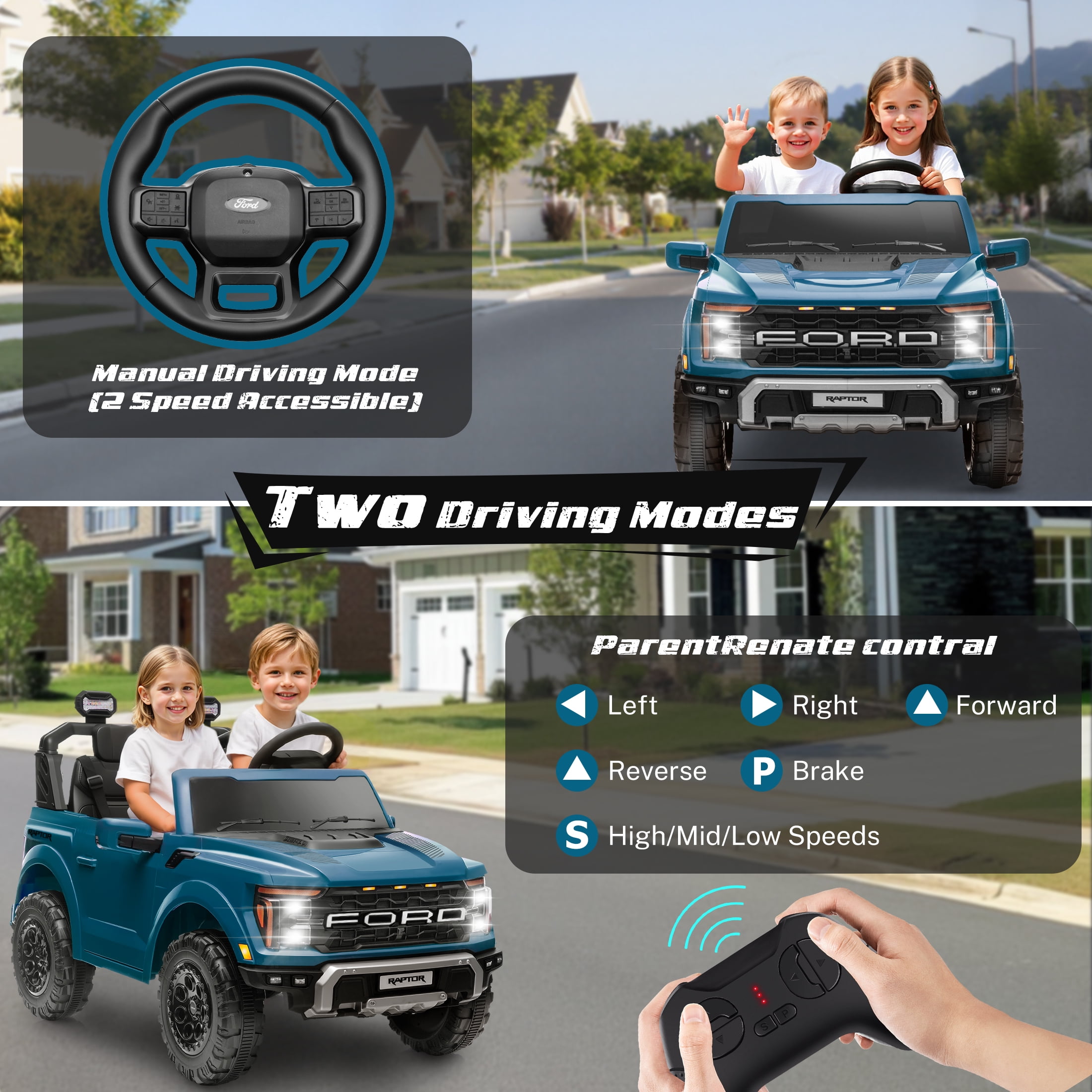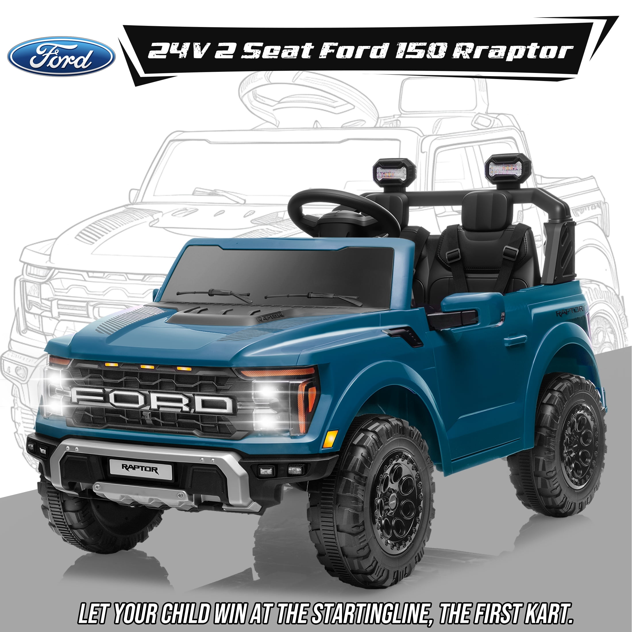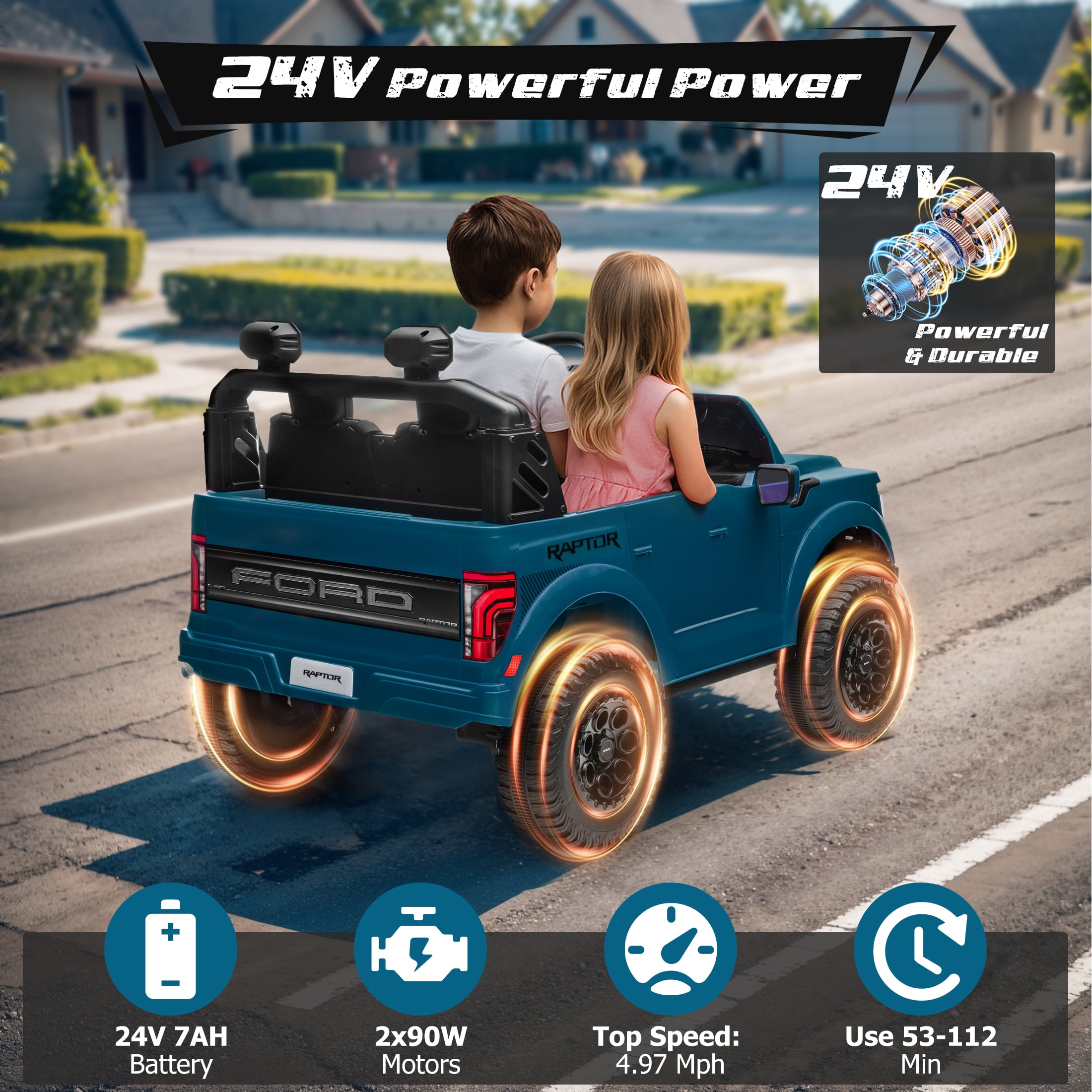 Ford F150 Raptor 24V Powered Ride on Cars for Kids, Extra large Real 2 Seater Ride on Toys with Remote Control, Bluetooth, LED, Truck Storage, Electric Vehicles Ride on Truck for Boys Girls Gifts